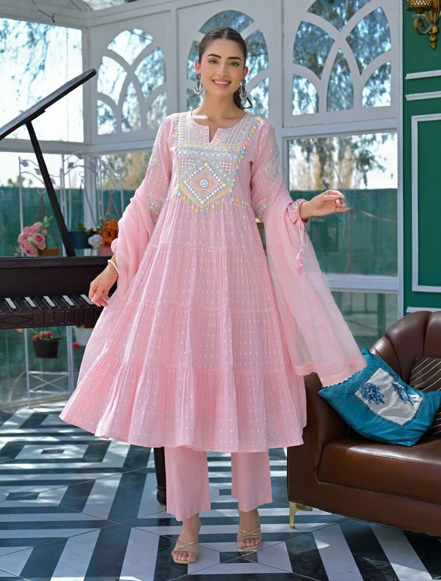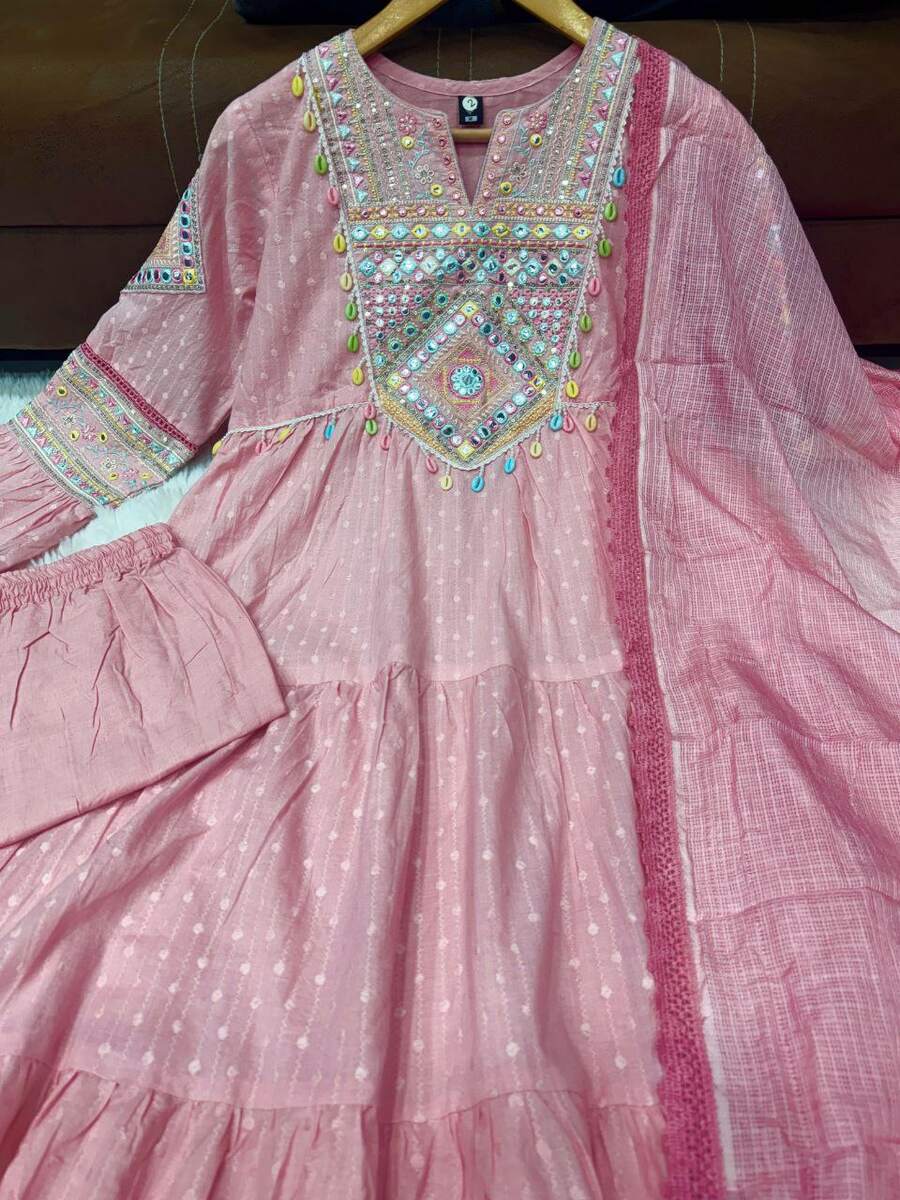 DESIGNER FLEX COTTON EMBROIDERY WORK TOP BOTTOM WITH DUPATTA BABY PINK