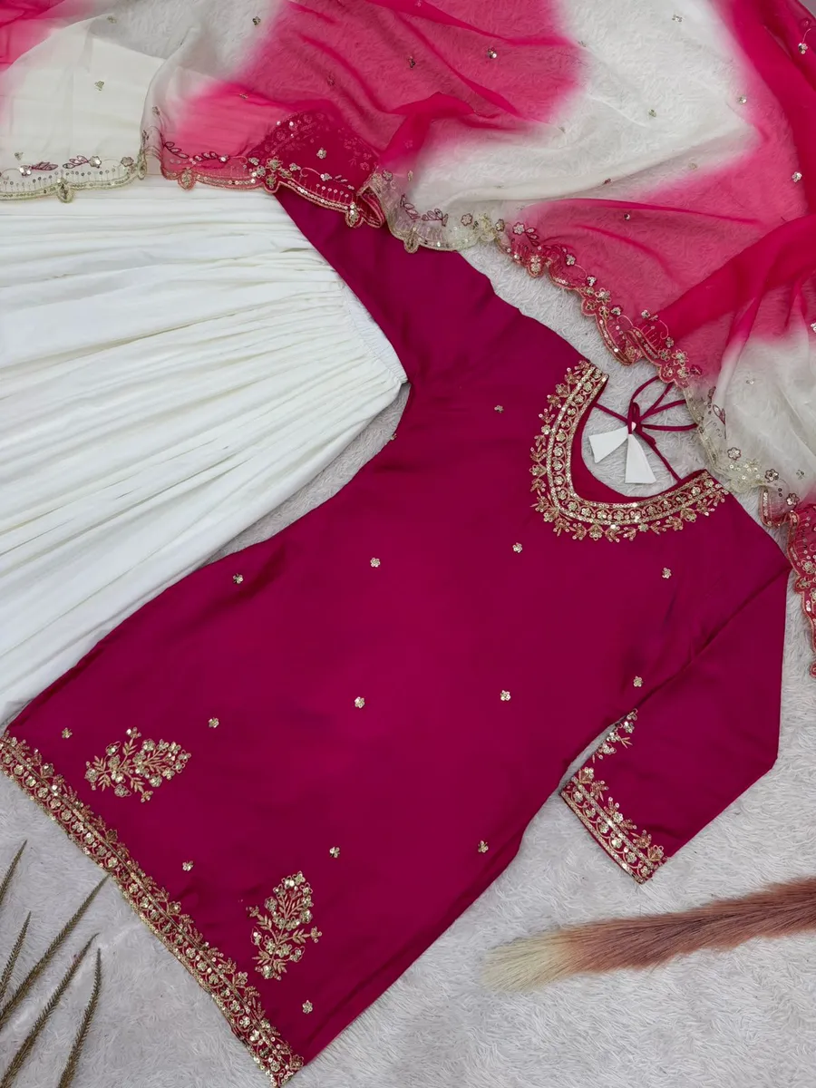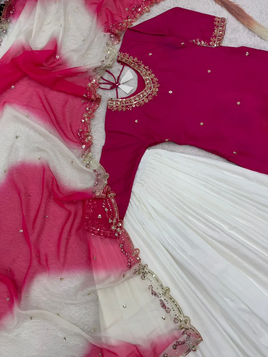 DESIGNER FRENCH CREPE EMBROIDERY SEQUENCE WORK TOP PALAZZO WITH DUPATTA PINK