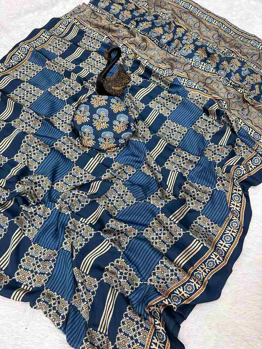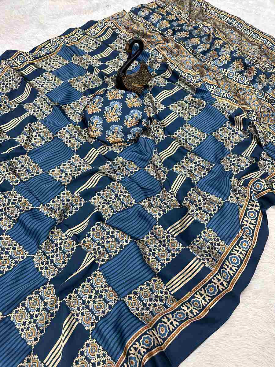 DESIGNER GAJI SOFT SILK BANDHEJ WORK SAREE WITH UNSTITCHED BLOUSE BLUE