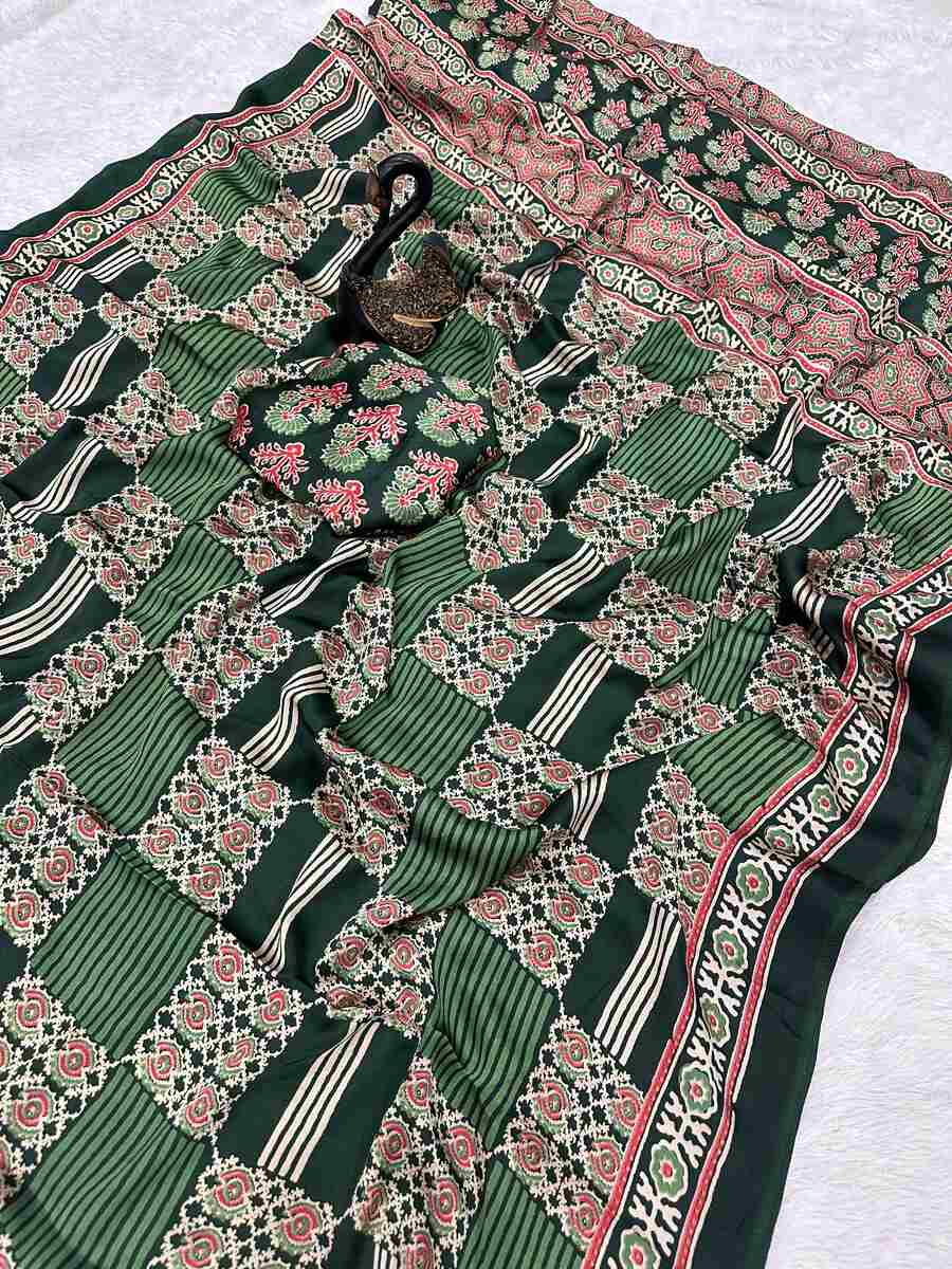 DESIGNER GAJI SOFT SILK BANDHEJ WORK SAREE WITH UNSTITCHED BLOUSE GREEN