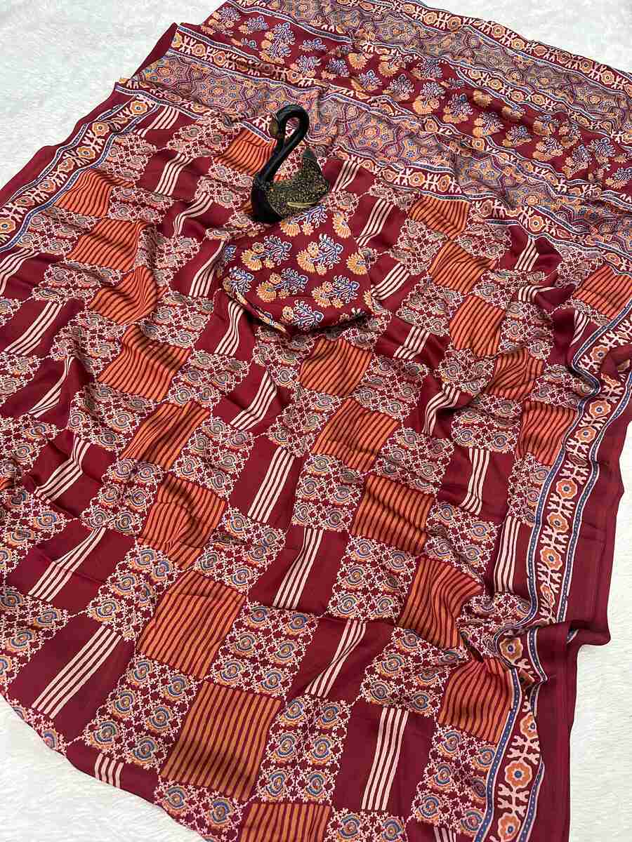 DESIGNER GAJI SOFT SILK BANDHEJ WORK SAREE WITH UNSTITCHED BLOUSE MAROON