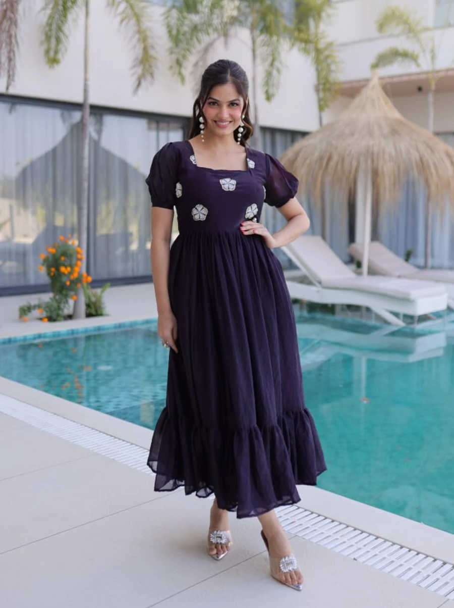 DESIGNER GEORGETTE BEADS EMBROIDERY WORK GOWN PURPLE