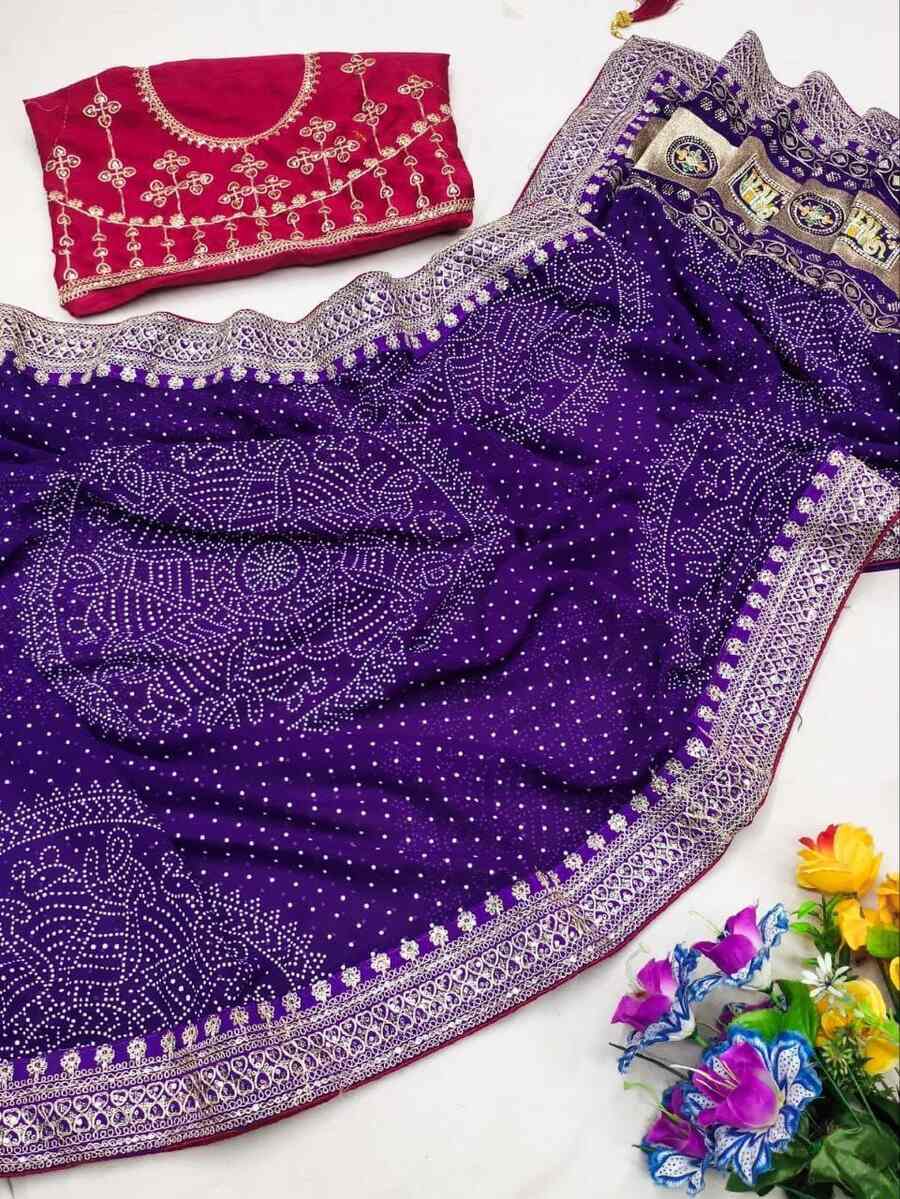 DESIGNER GEORGETTE CODING SEQUENCE BORDER WITH BADHANI FOIL PRINT WORK SAREE WITH UNSITCHED BLOUSE PURPLE