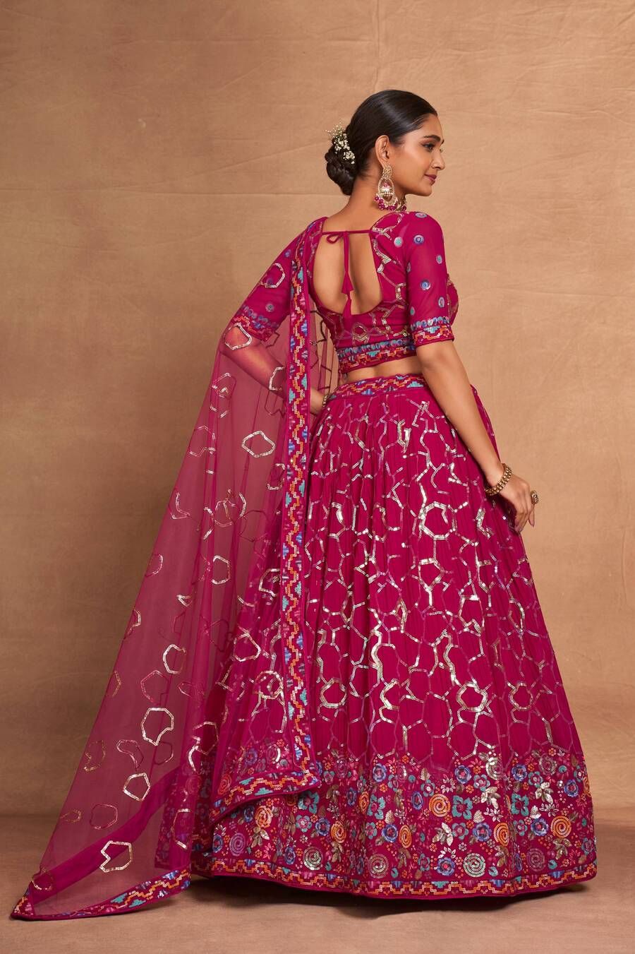 DESIGNER GEORGETTE EMBROIDERY AND SEQUENCE WORK LEHENGA CHOLI WITH DUPATTA PINK