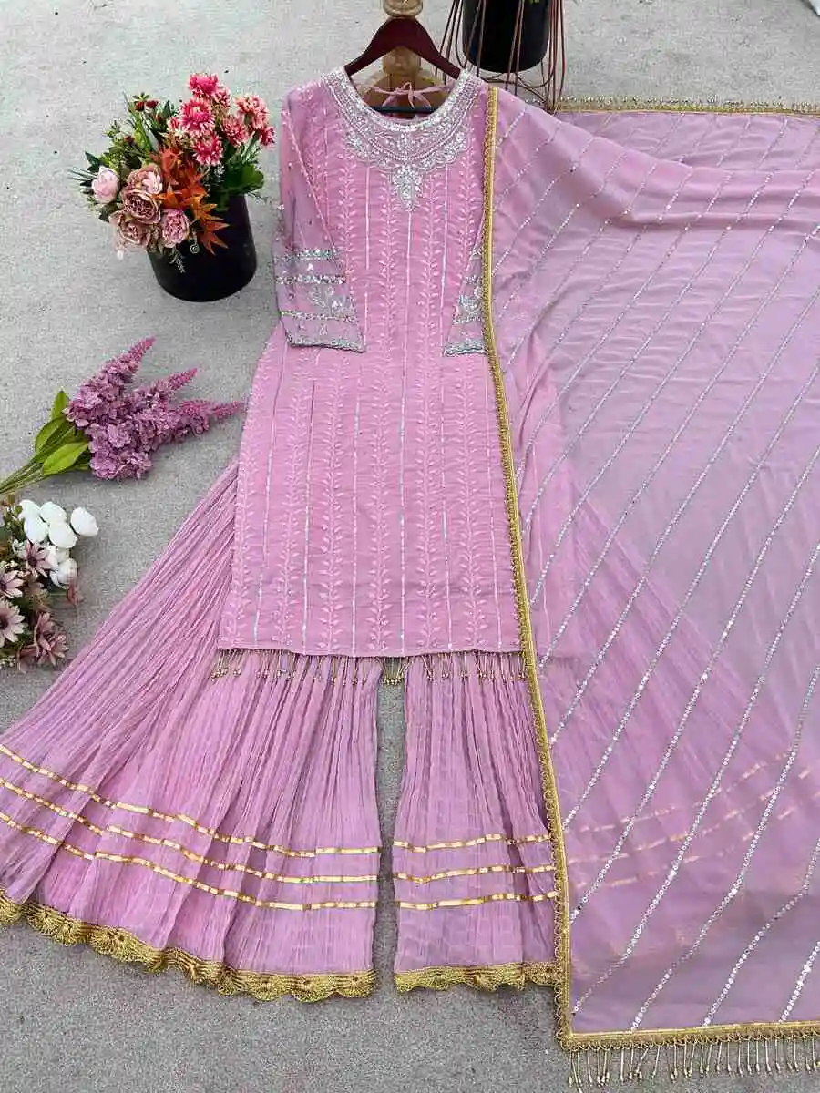 DESIGNER GEORGETTE EMBROIDERY SEQUENCE WITH BEADS WORK TOP PALAZZO WITH DUPATTA BABY PINK