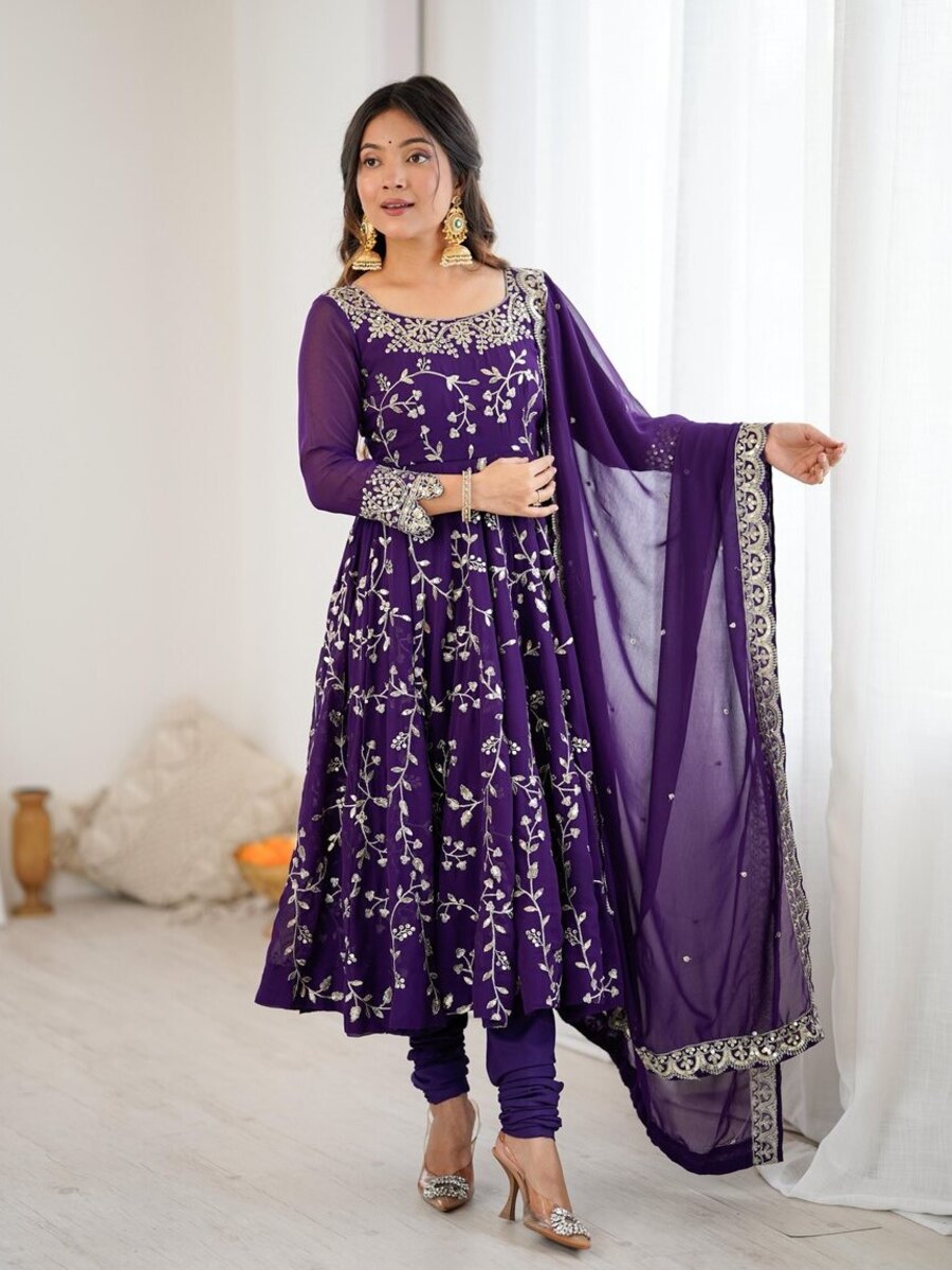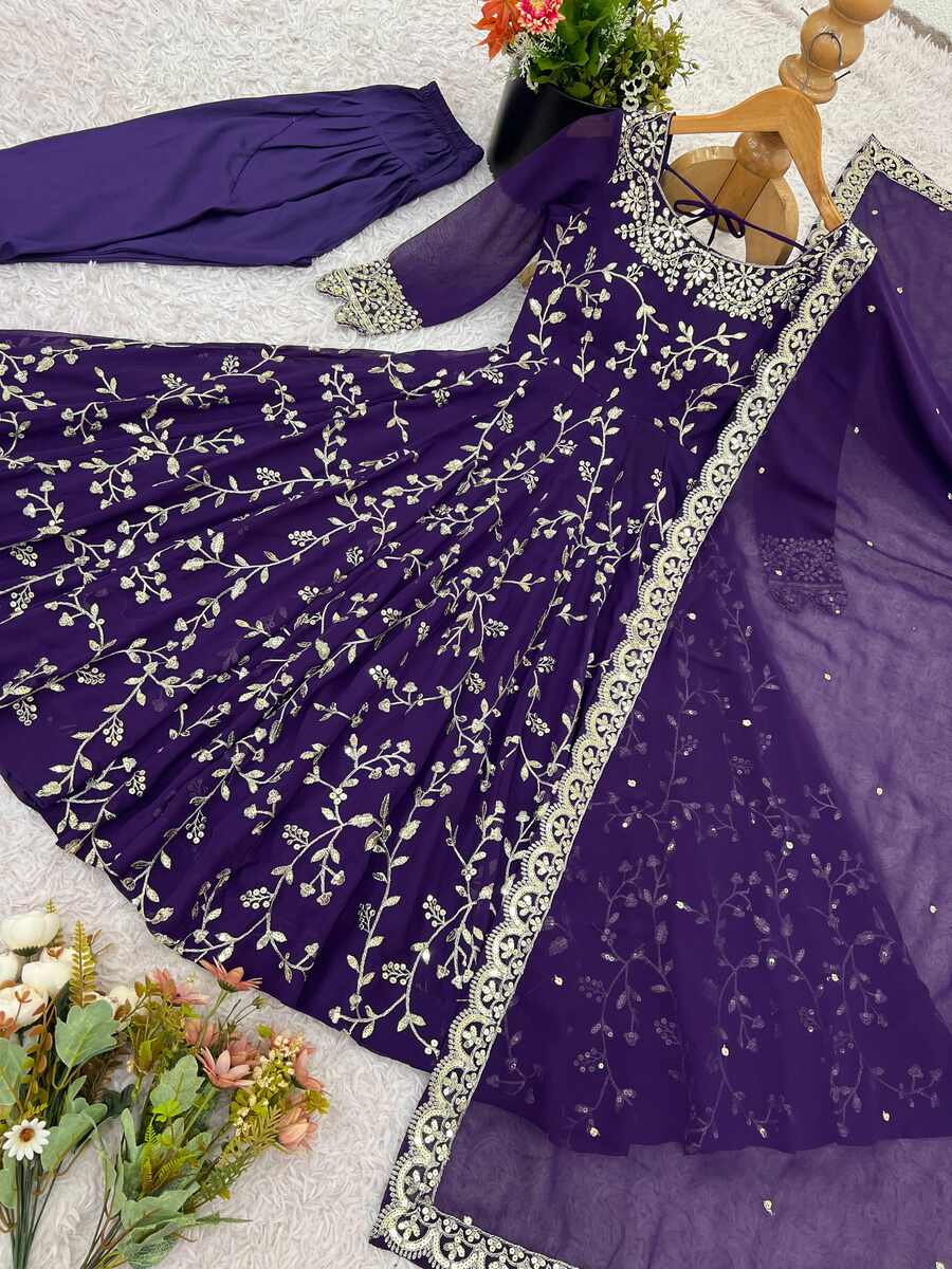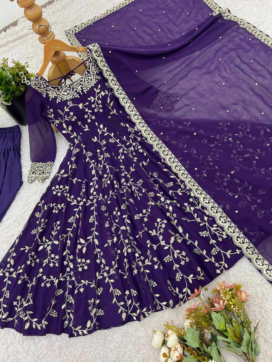 DESIGNER GEORGETTE EMBROIDERY SEQUENCE WORK GOWN BOTTOM WITH DUPATTA PURPLE