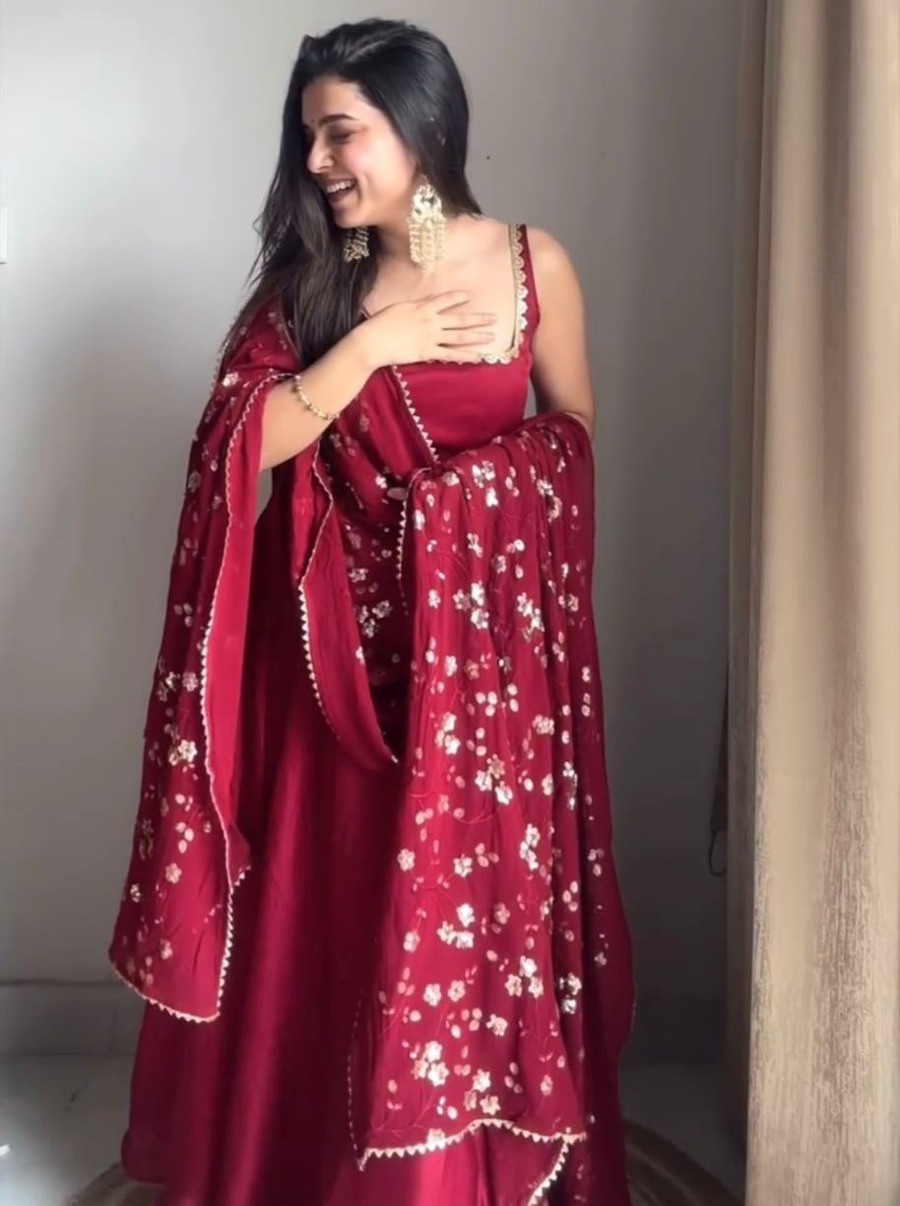 DESIGNER GEORGETTE EMBROIDERY SEQUENCE WORK GOWN BOTTOM WITH DUPATTA RED