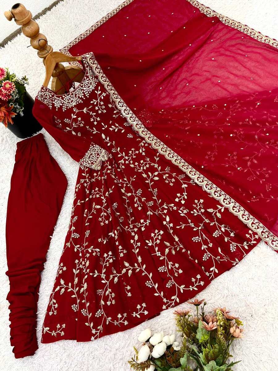 DESIGNER GEORGETTE EMBROIDERY SEQUENCE WORK GOWN BOTTOM WITH DUPATTA RED