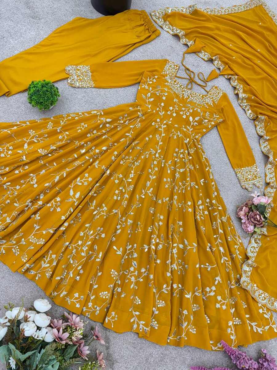 DESIGNER GEORGETTE EMBROIDERY SEQUENCE WORK GOWN BOTTOM WITH DUPATTA YELLOW