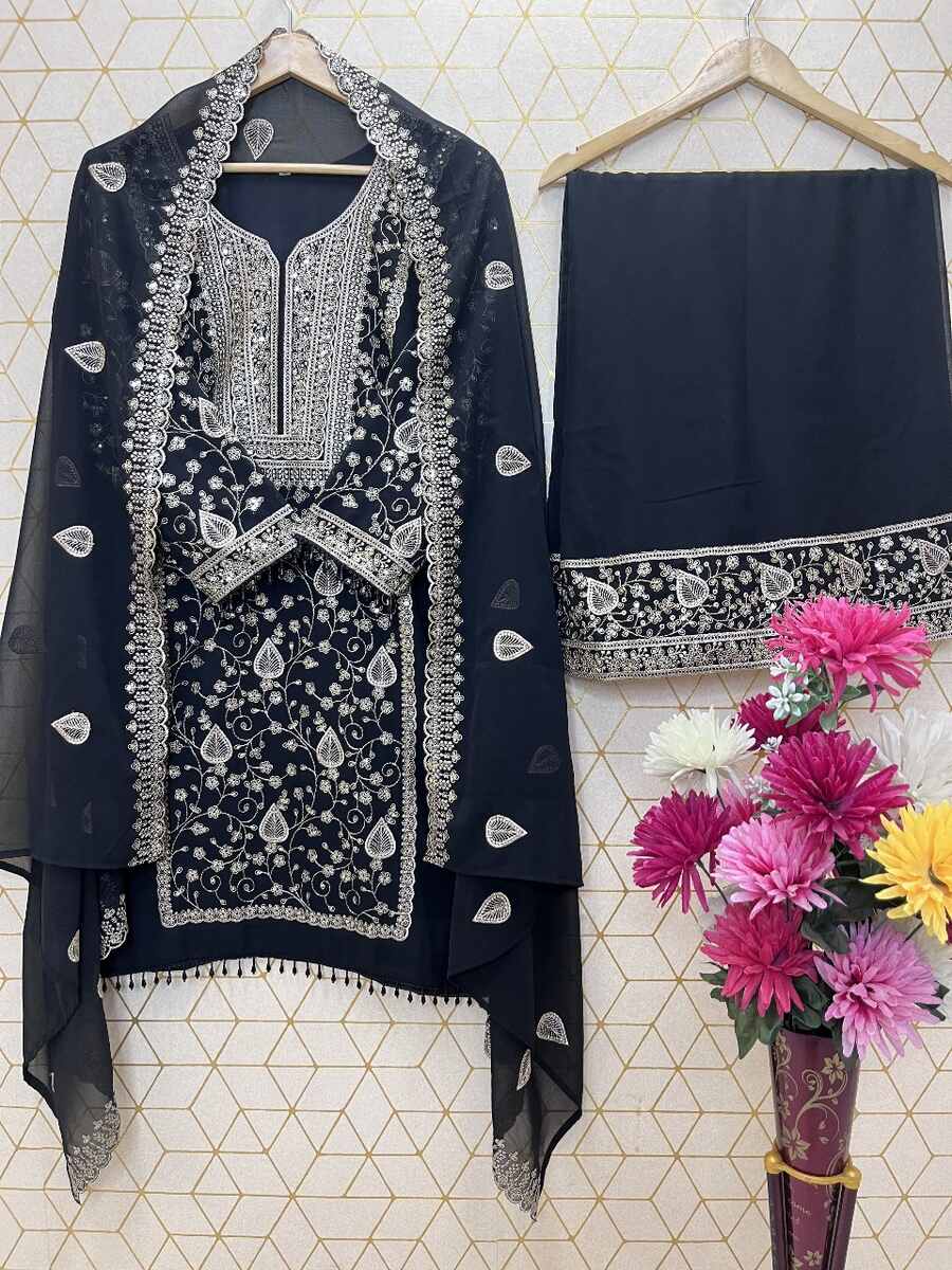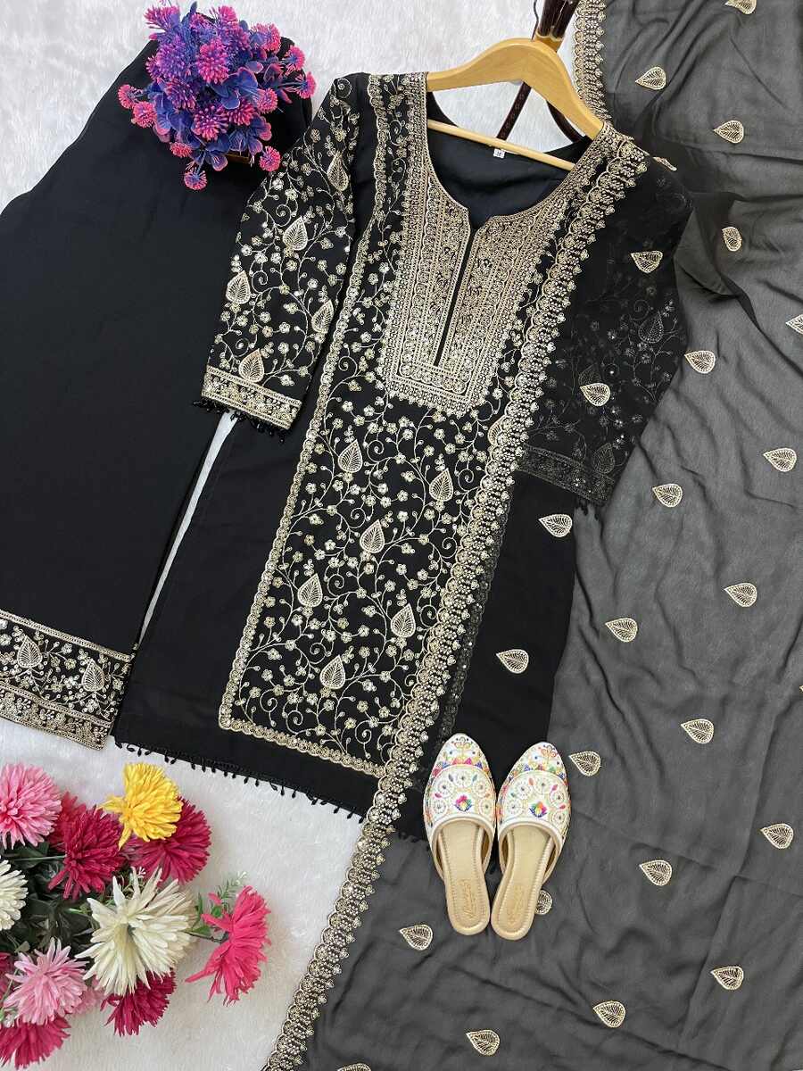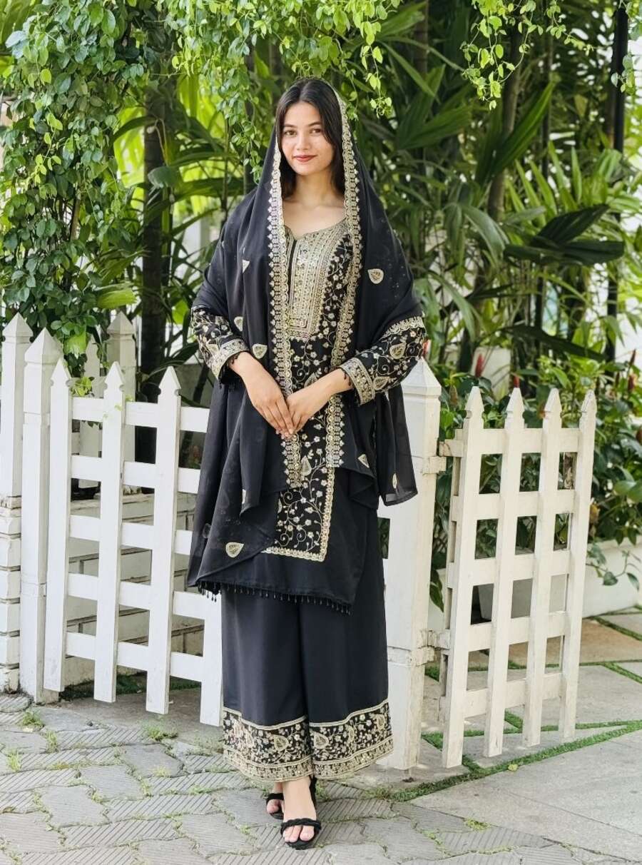 DESIGNER GEORGETTE EMBROIDERY SEQUENCE WORK TOP PALAZZO WITH DUPATTA BLACK