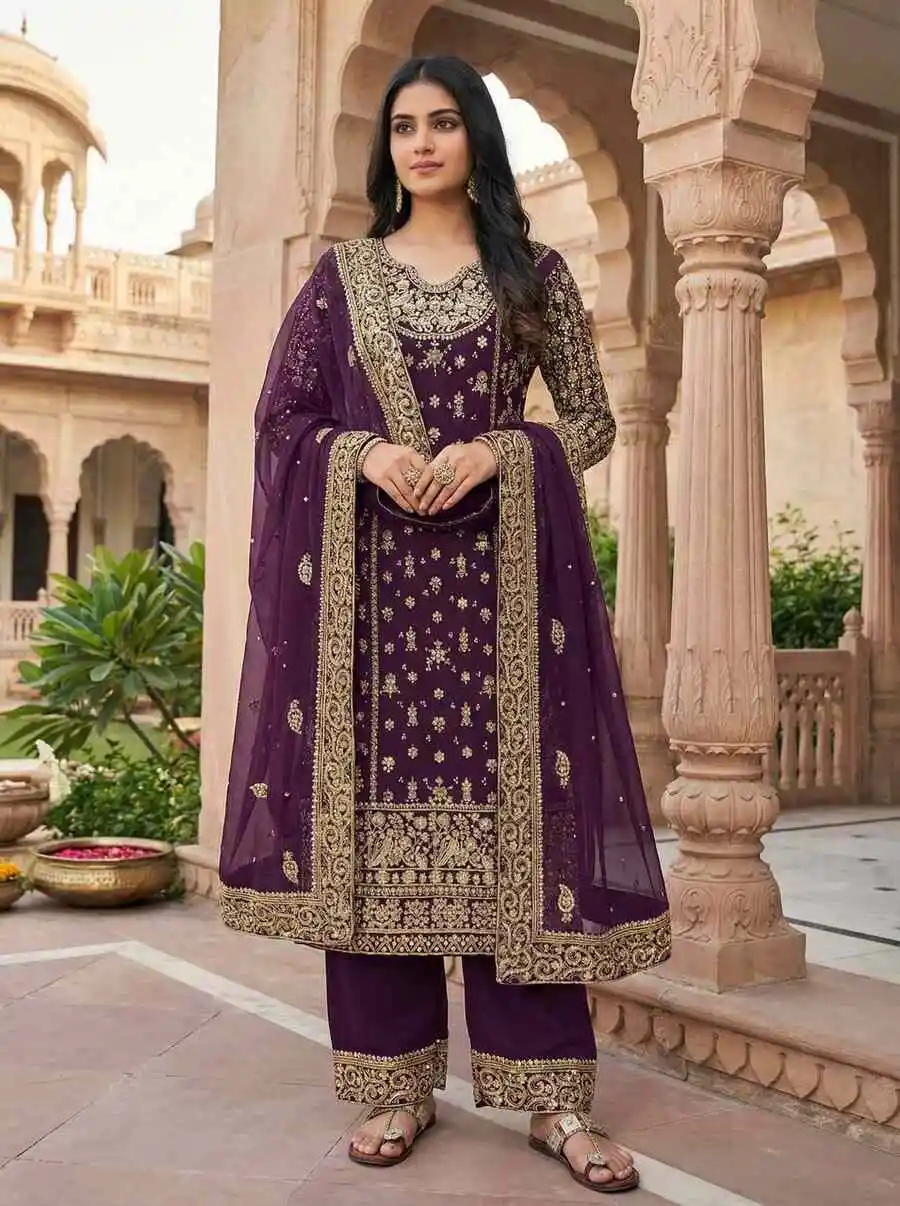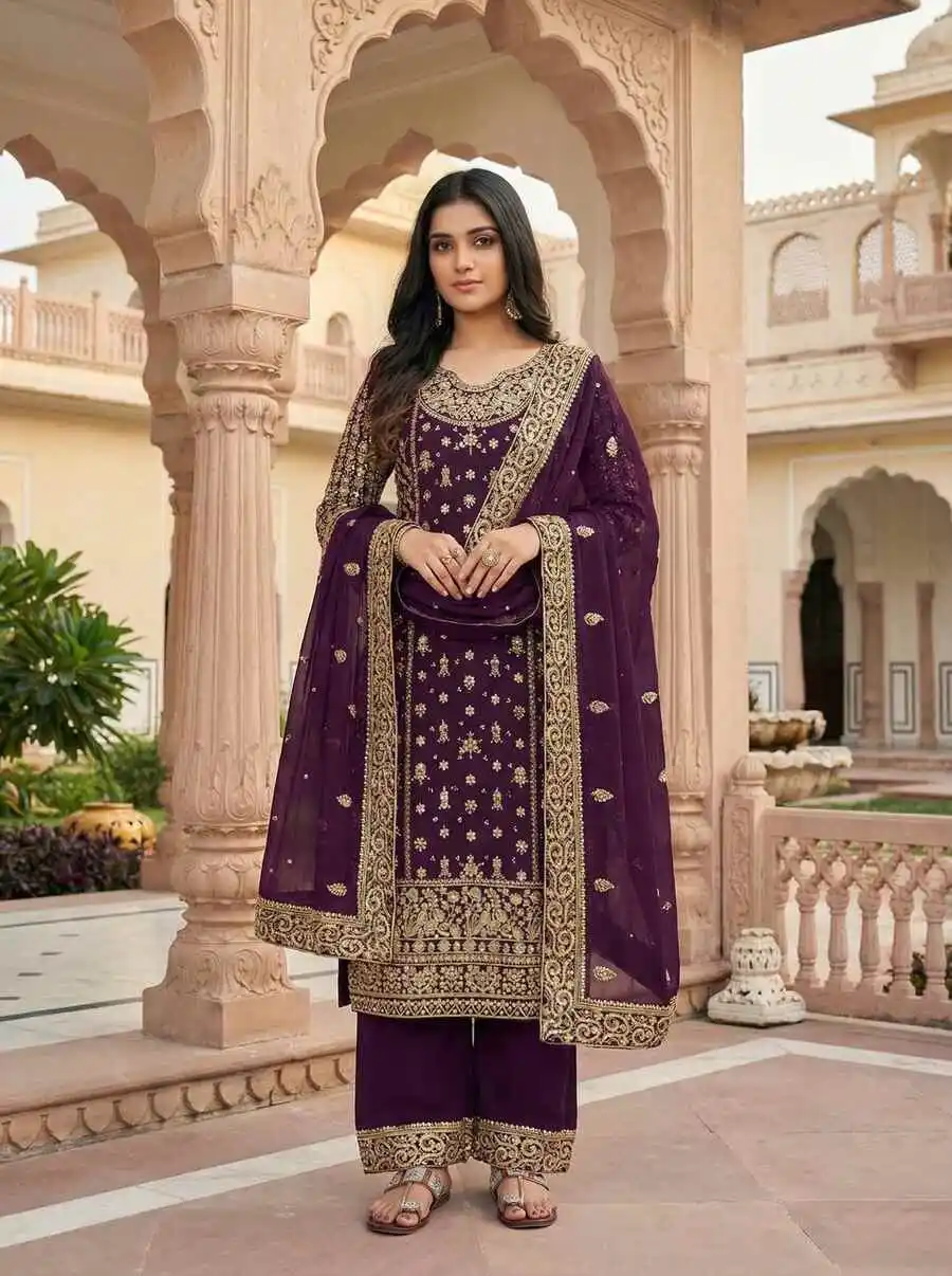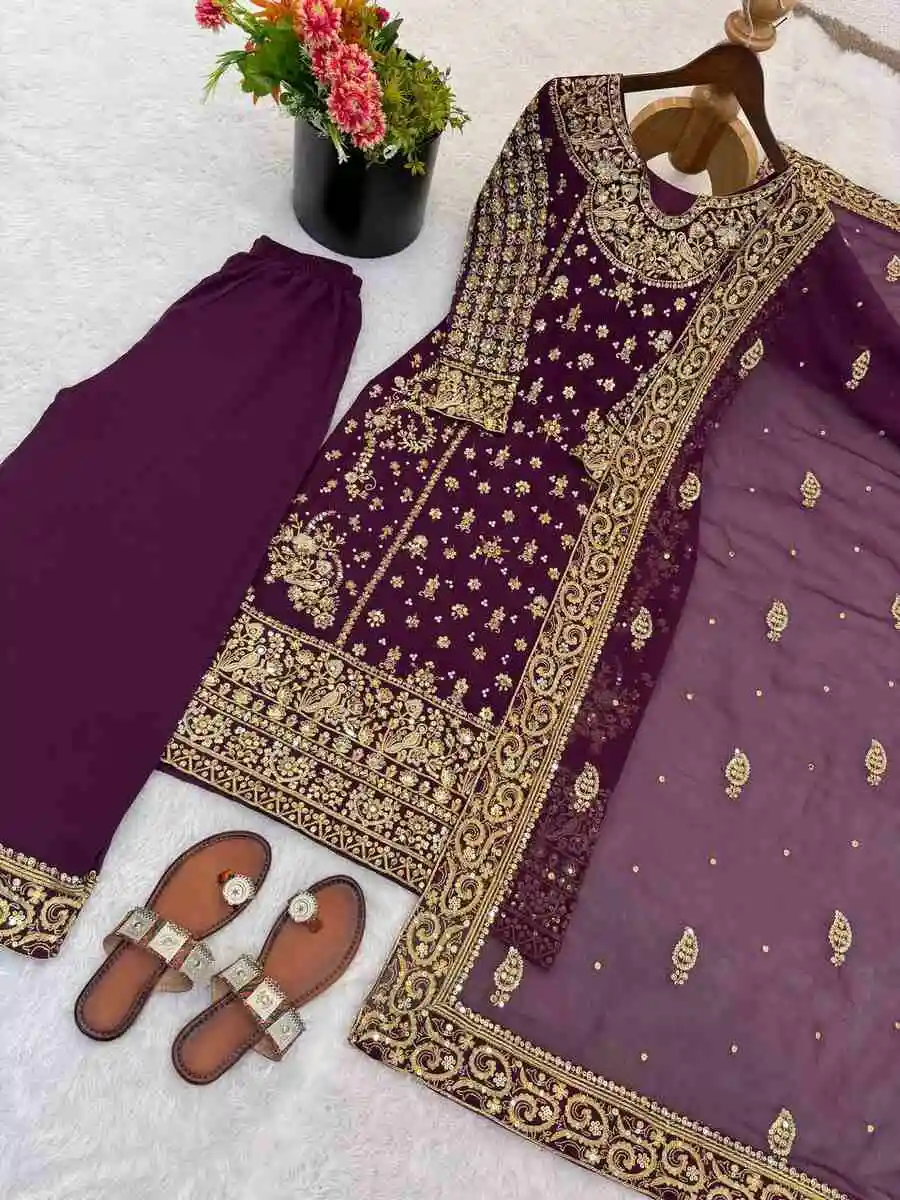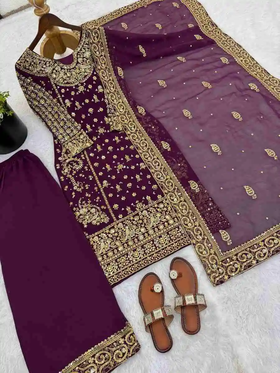 DESIGNER GEORGETTE EMBROIDERY SEQUENCE WORK TOP PALAZZO WITH DUPATTA PURPLE