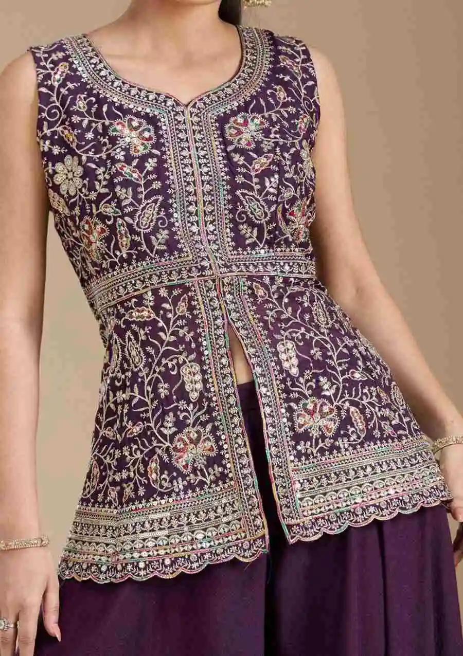 DESIGNER GEORGETTE EMBROIDERY SEQUENCE WORK TOP PALAZZO WITH DUPATTA WINE
