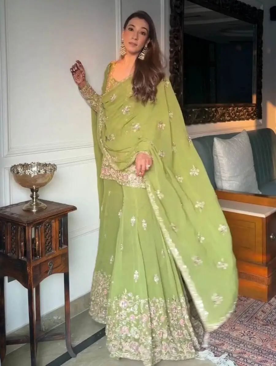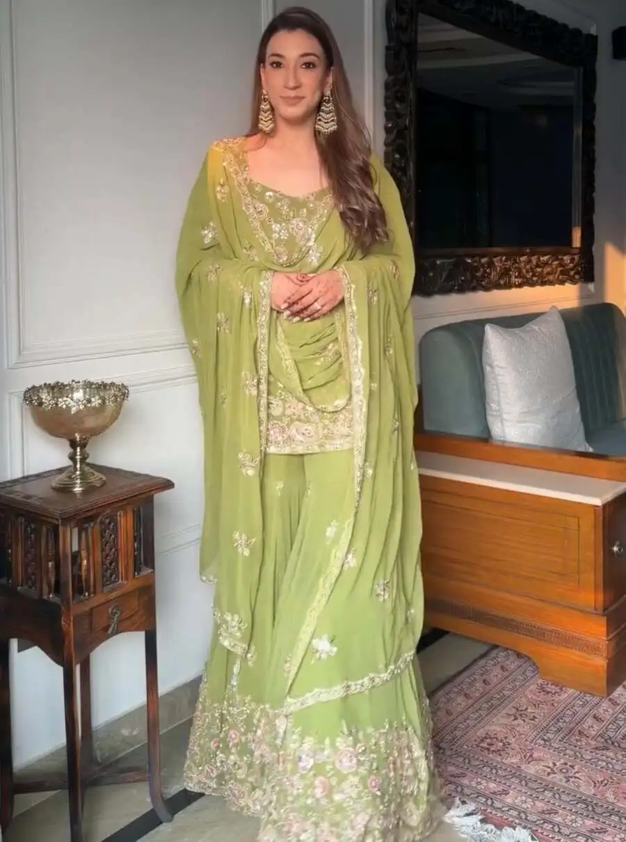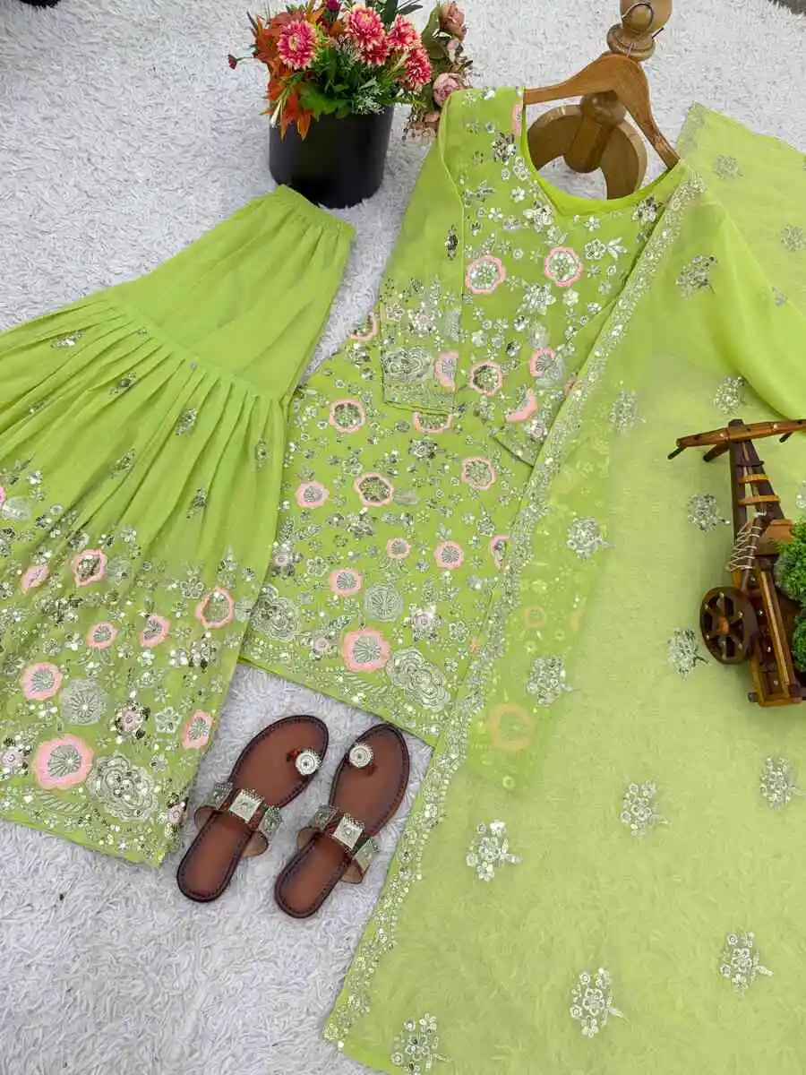 DESIGNER GEORGETTE EMBROIDERY SEQUENCE WORK TOP SHARARA WITH DUPATTA PARROT GREEN