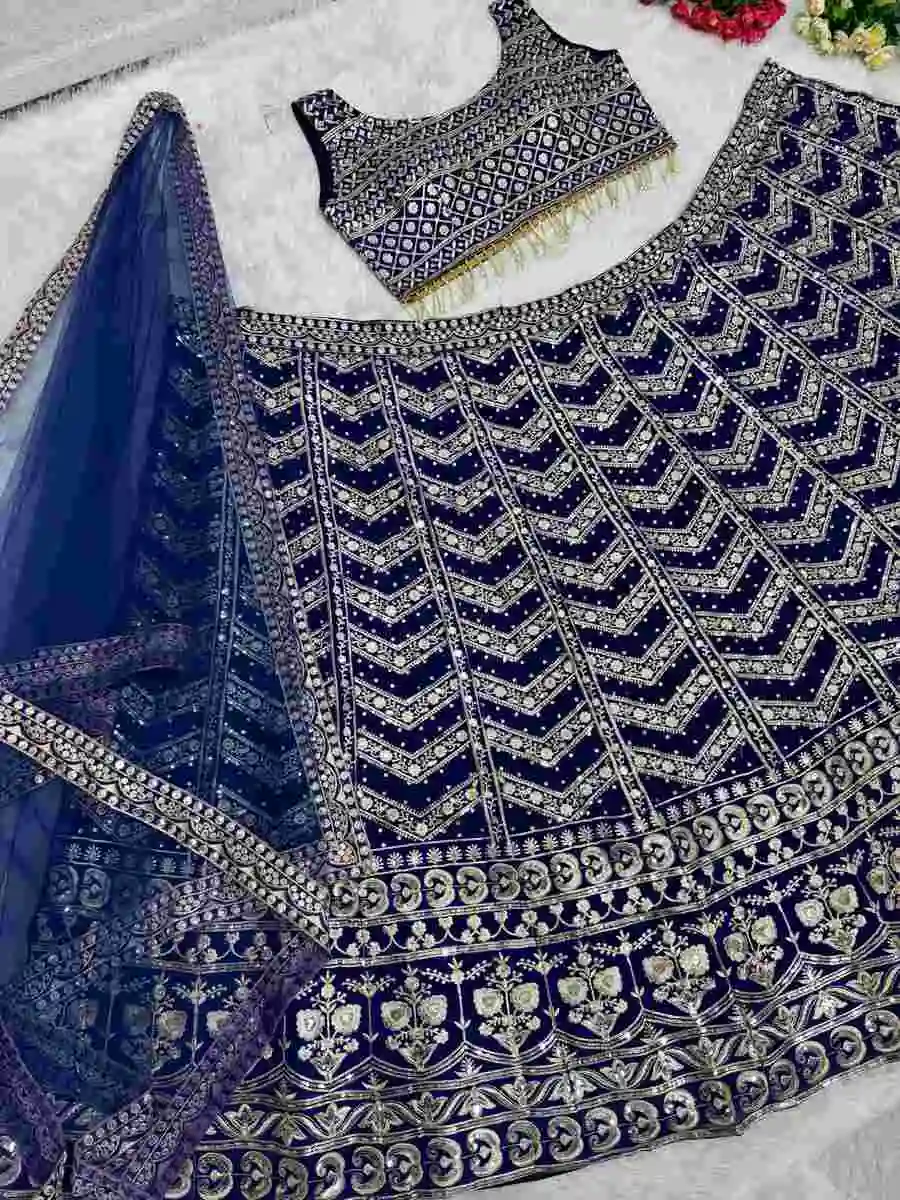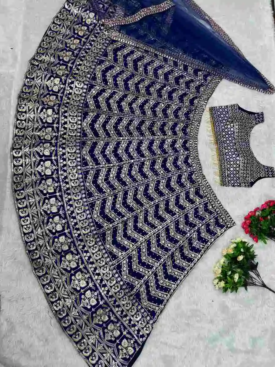 DESIGNER GEORGETTE EMBROIDERY SEQUNCE WORK WITH DIMOND HAND WORK LEHENGA CHOLI WITH DUPATTA BLUE