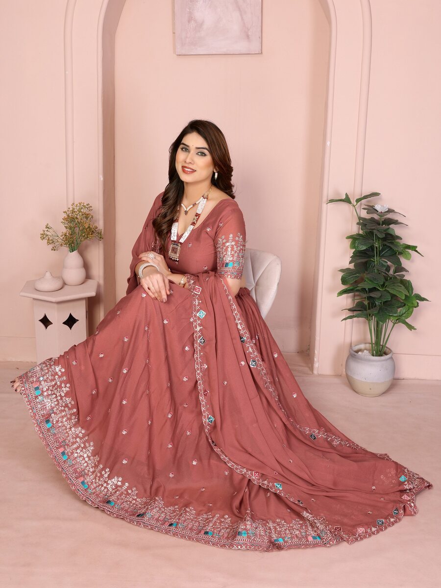 DESIGNER GEORGETTE EMBROIDERY WORK LEHENGA CHOLI WITH DUPATTA BROWN