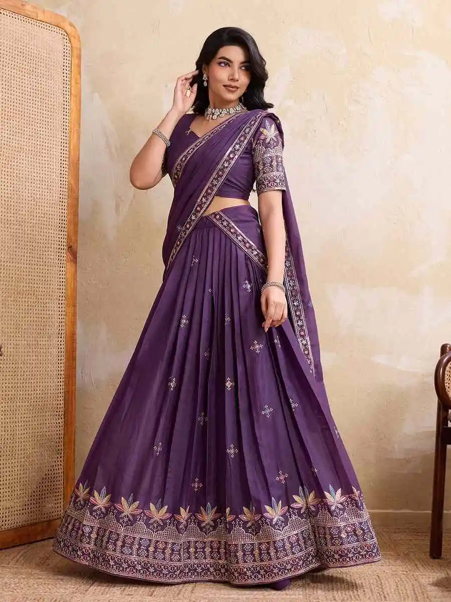 DESIGNER GEORGETTE EMBROIDERY WORK LEHENGA CHOLI WITH DUPATTA PURPLE