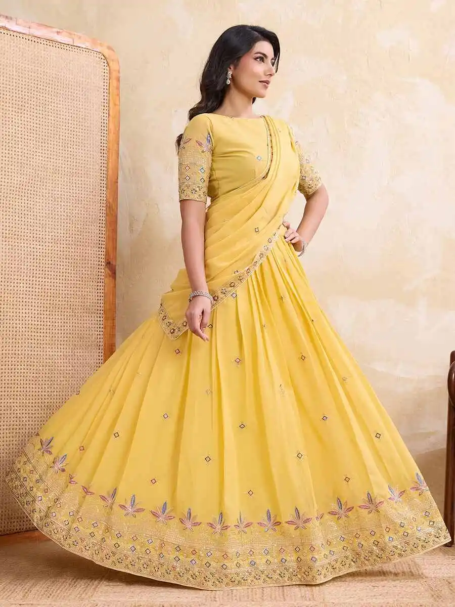 DESIGNER GEORGETTE EMBROIDERY WORK LEHENGA CHOLI WITH DUPATTA YELLOW