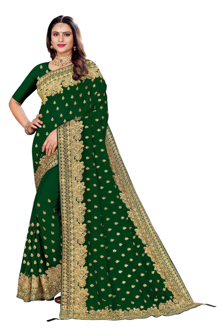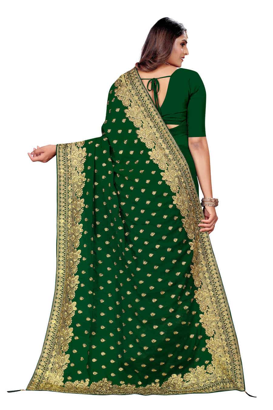 DESIGNER GEORGETTE EMBROIDERY WORK SAREE WITH UNSTITCHED BLOUSE GREEN
