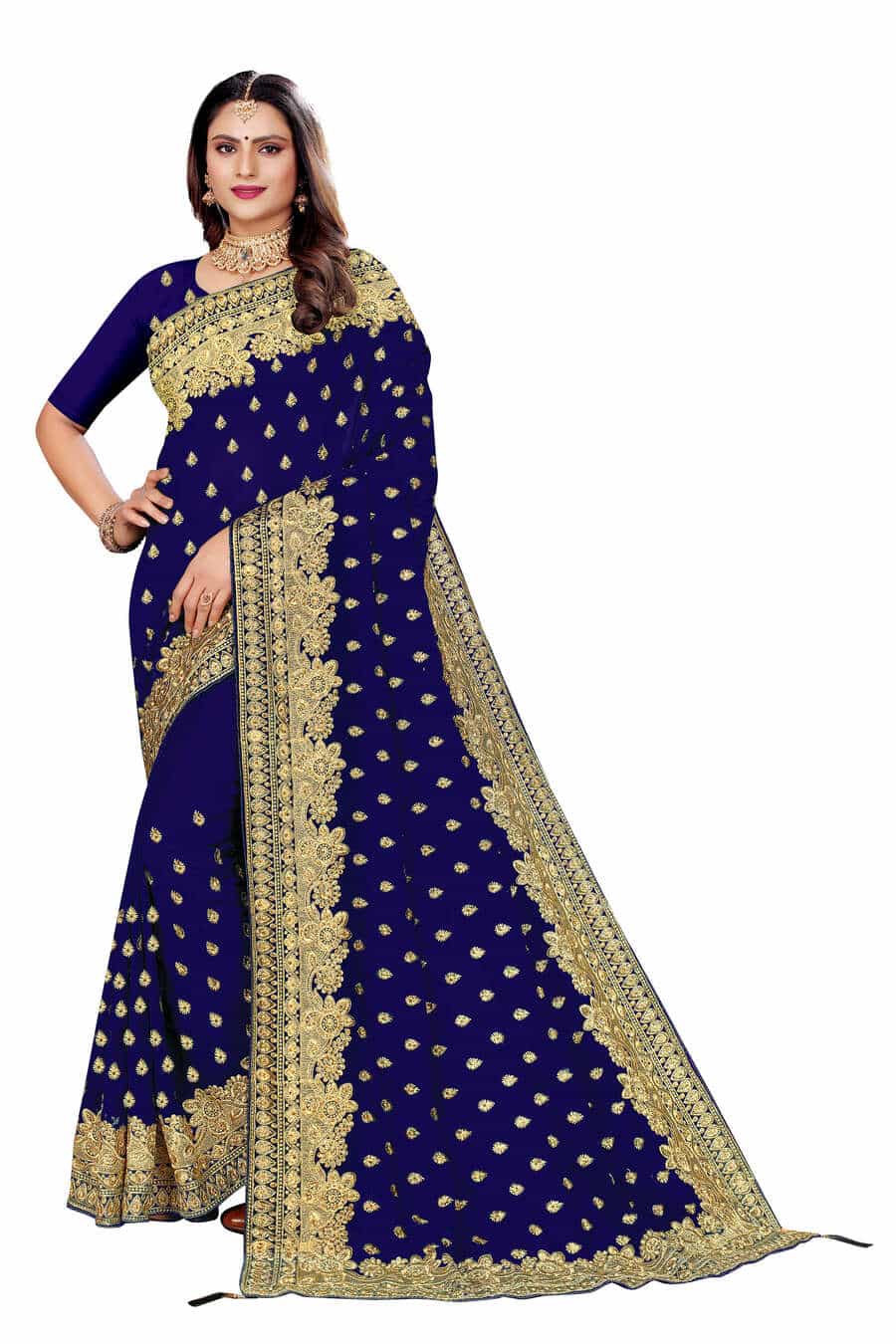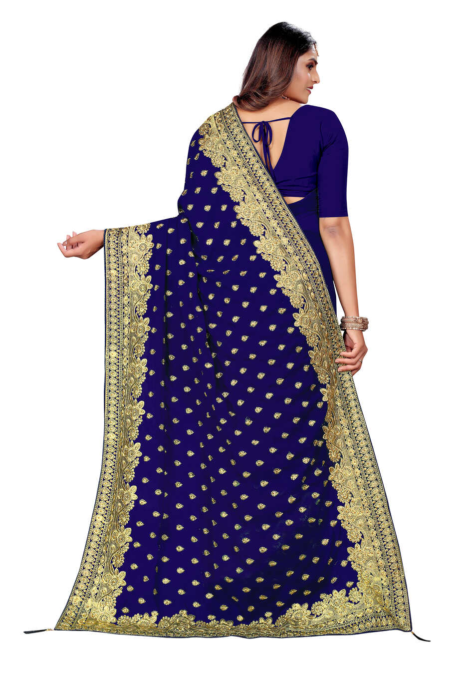DESIGNER GEORGETTE EMBROIDERY WORK SAREE WITH UNSTITCHED BLOUSE PURPLE