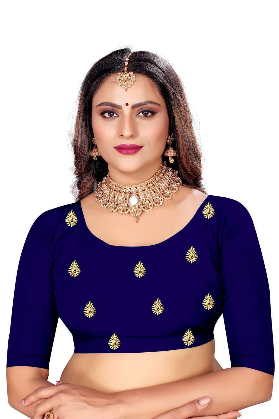 BLOUSE :- SATIN BANGLORY SILK WITH DUAL SEQUENCE EMBROIDERY WORK