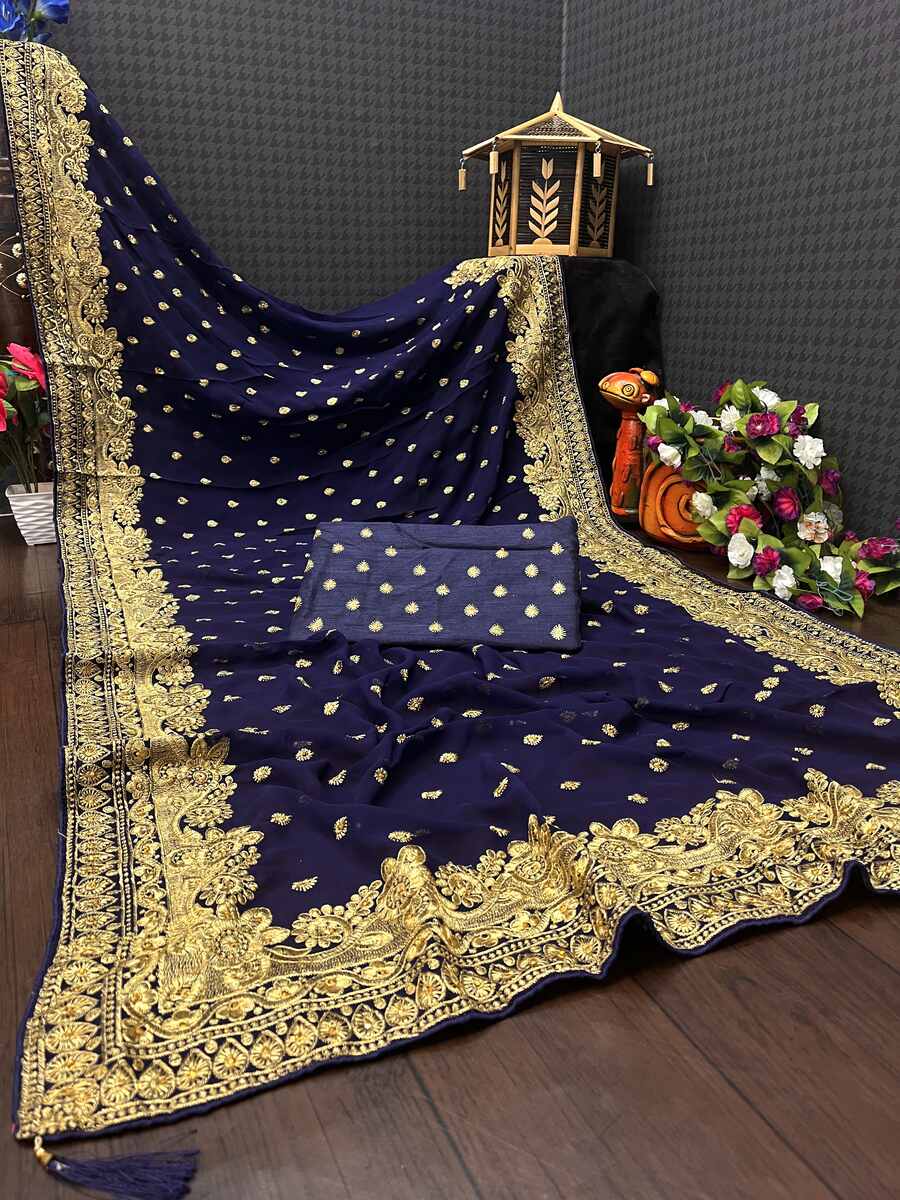 SAREE FABRIC :- PURE GEORGETTE HEAVY EMBROIDERY C PALLU WORK WITH 5MM SEQUENCE AND ALL OVER SAREE BUTTA WORK