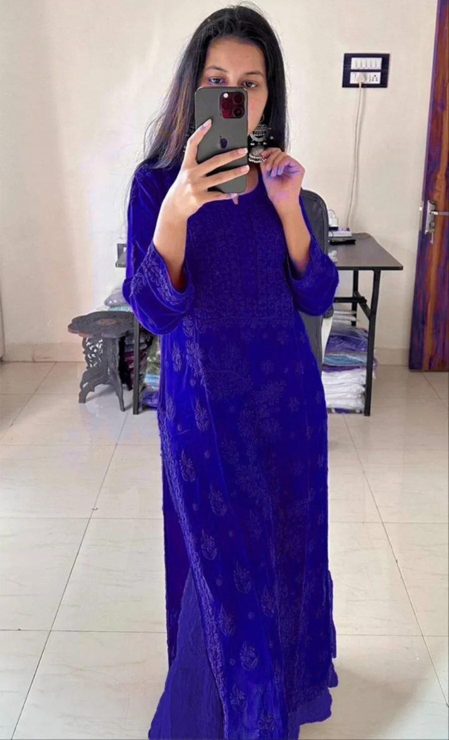 BOTTOM FABRIC :HEAVY PURE VISCOSE VELVET WITH EMBROIDERY WORK