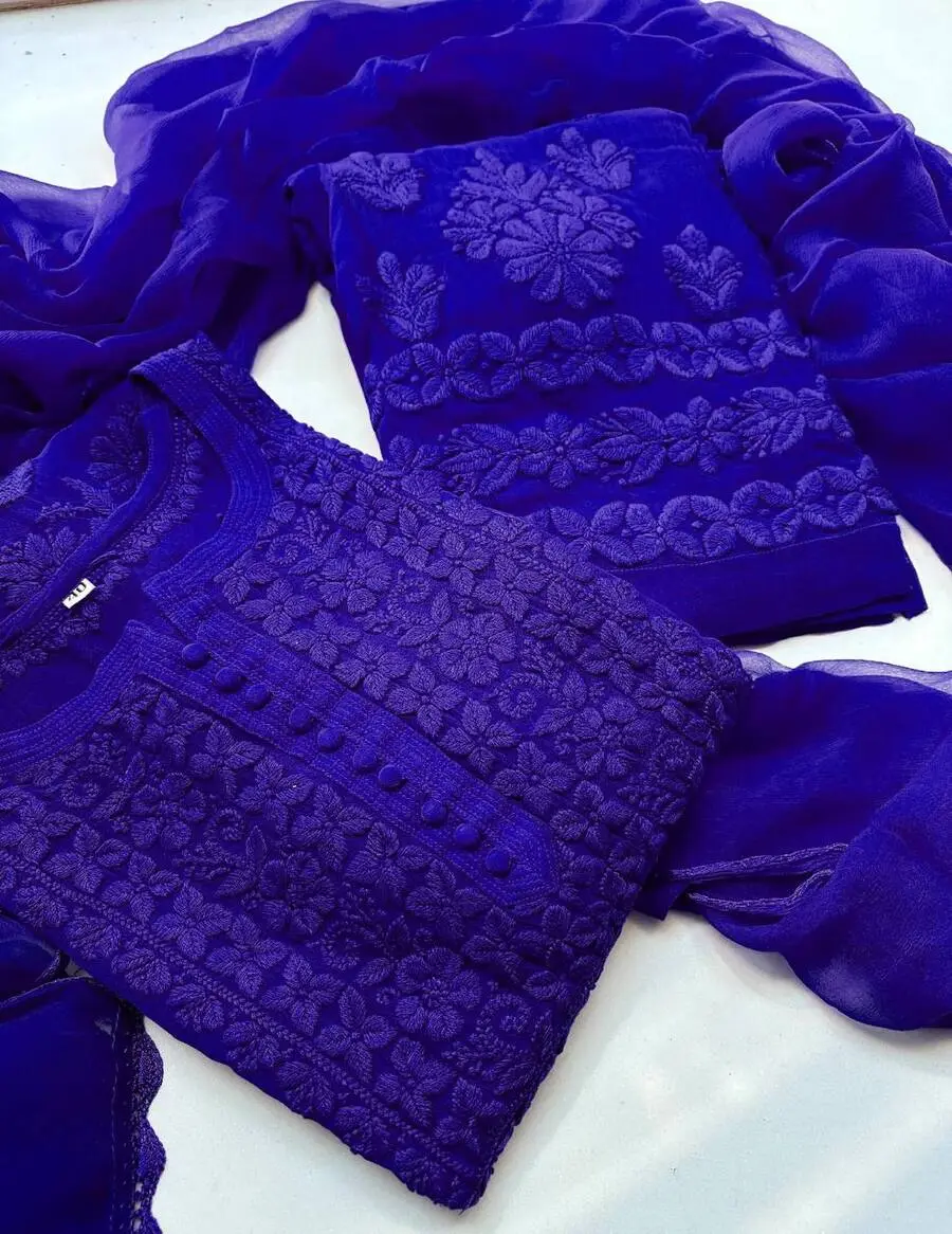 DESIGNER GEORGETTE EMBROIDERY WORK TOP BOTTOM WITH DUPATTA BLUE