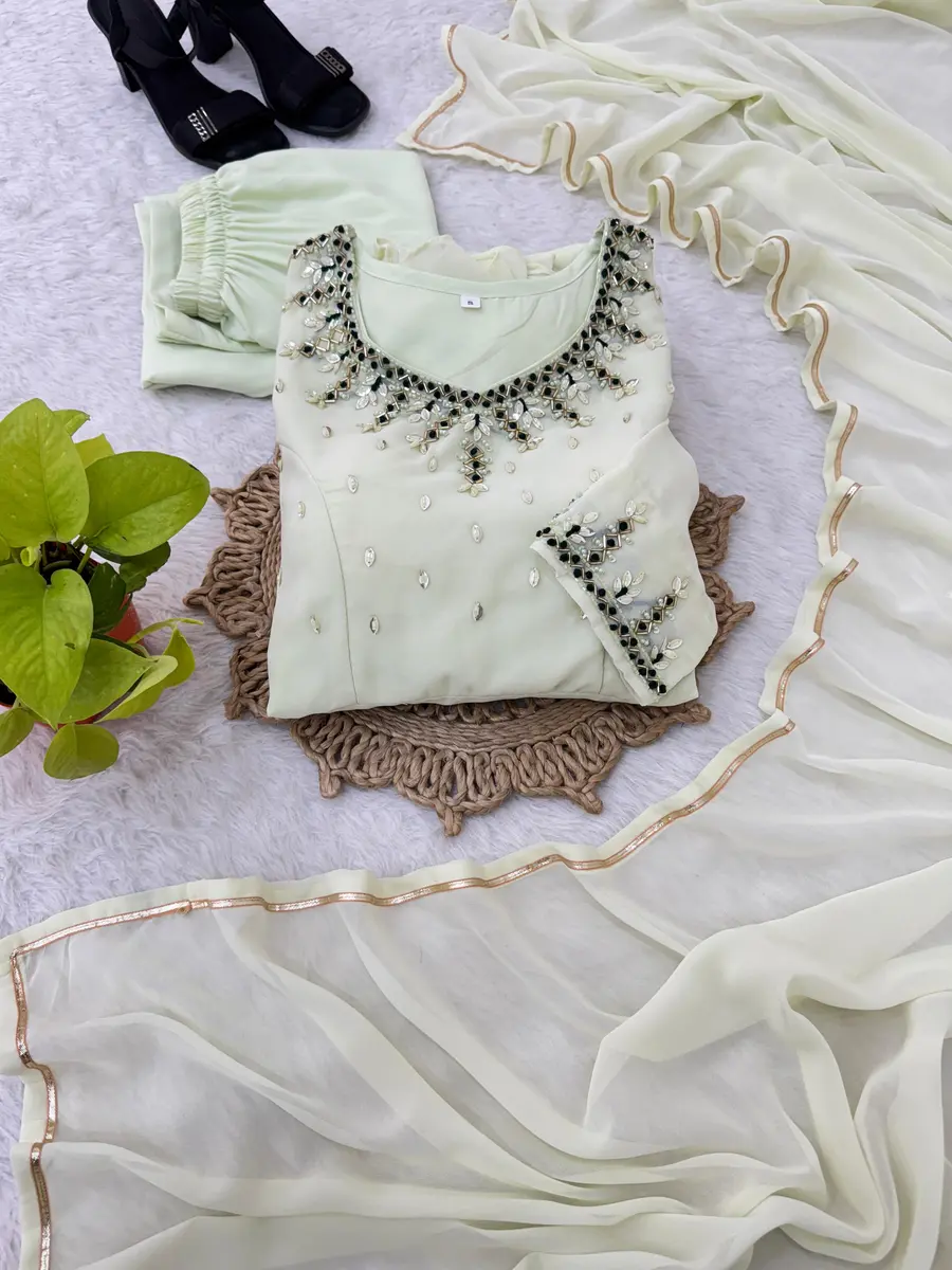 DESIGNER GEORGETTE HANDWORK GOWN BOTTOM WITH DUPATTA MINT