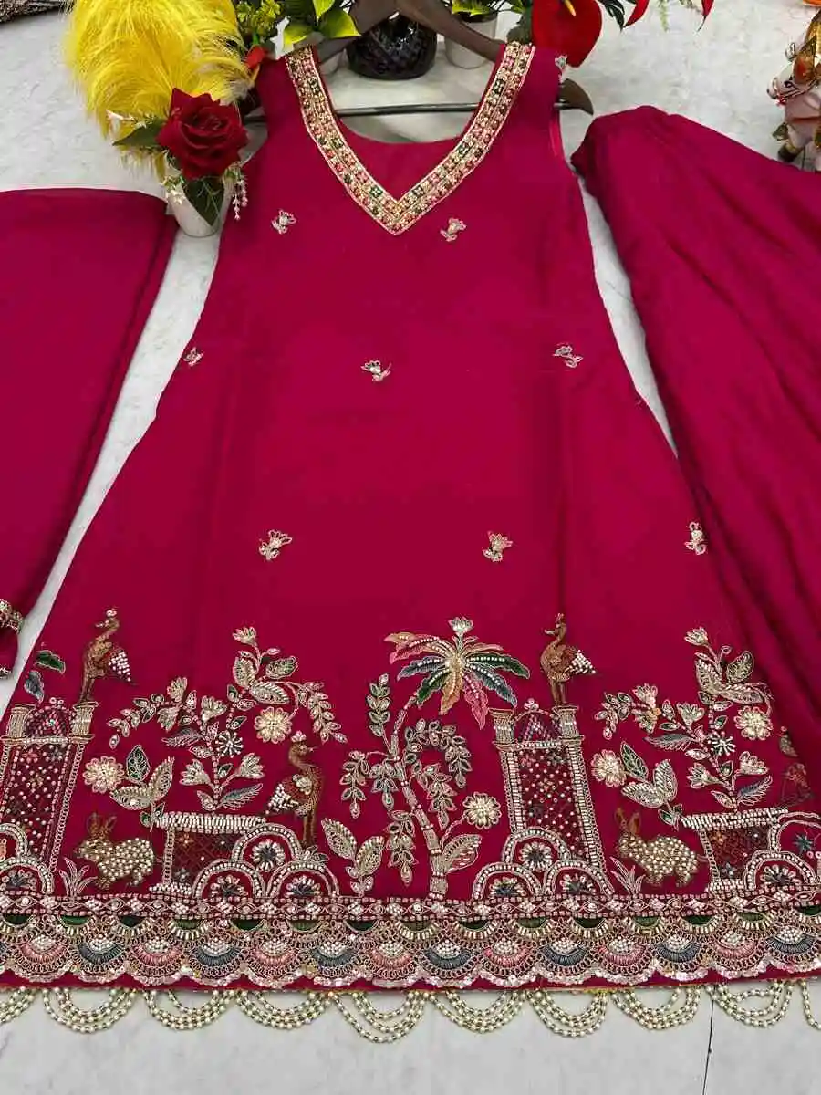 DESIGNER GEORGETTE MOTI BEADS WITH CODING SEQUENCE & THREAD EMBROIDERY WORK TOP PALAZZO WITH DUPATTA PINK