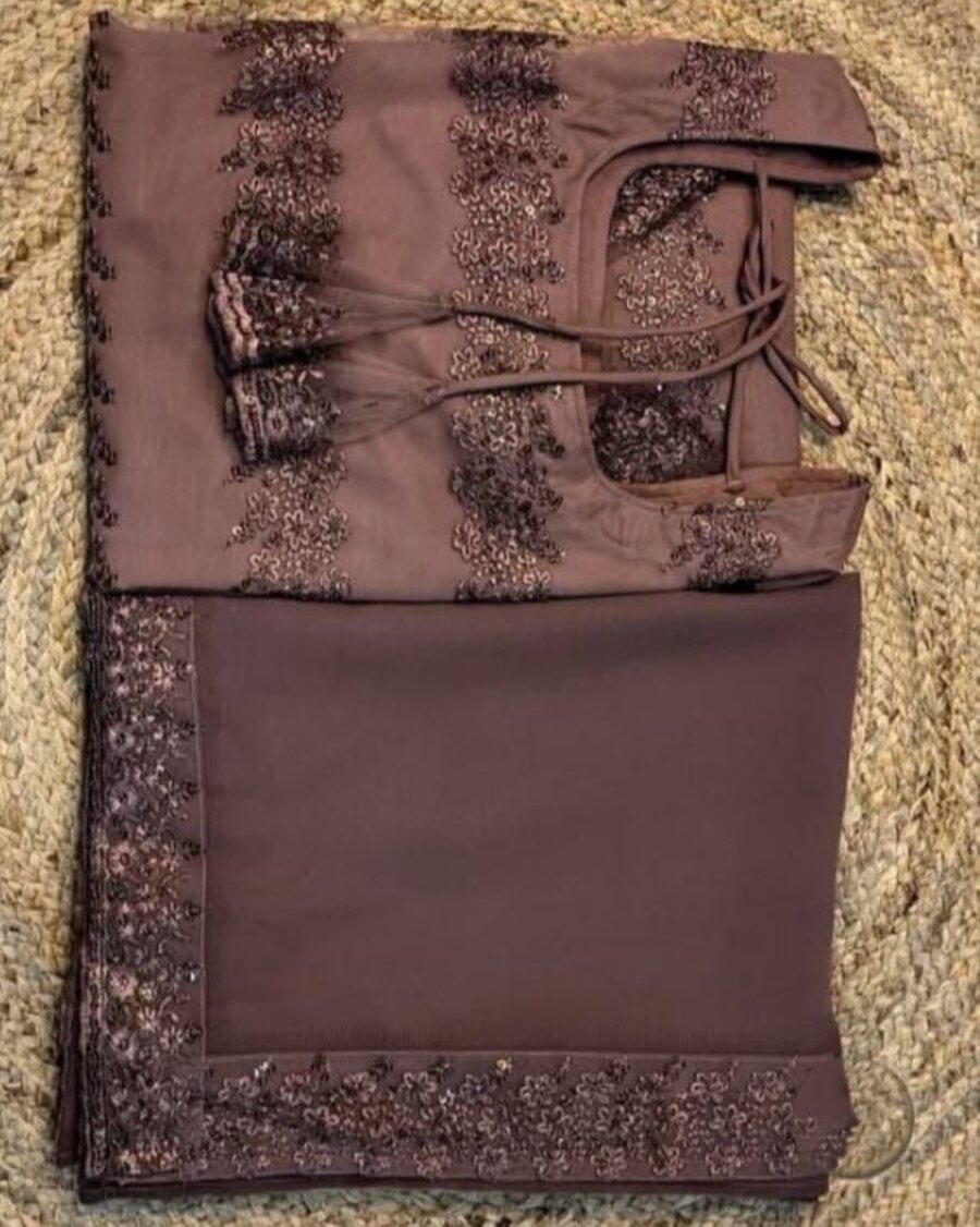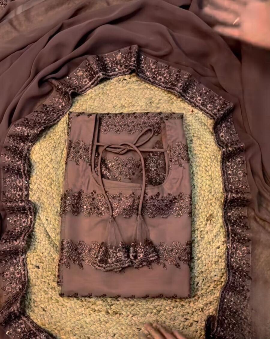 DESIGNER GEORGETTE MULTI SEQUENCE WORK TOP WITH DUPATTA BROWN