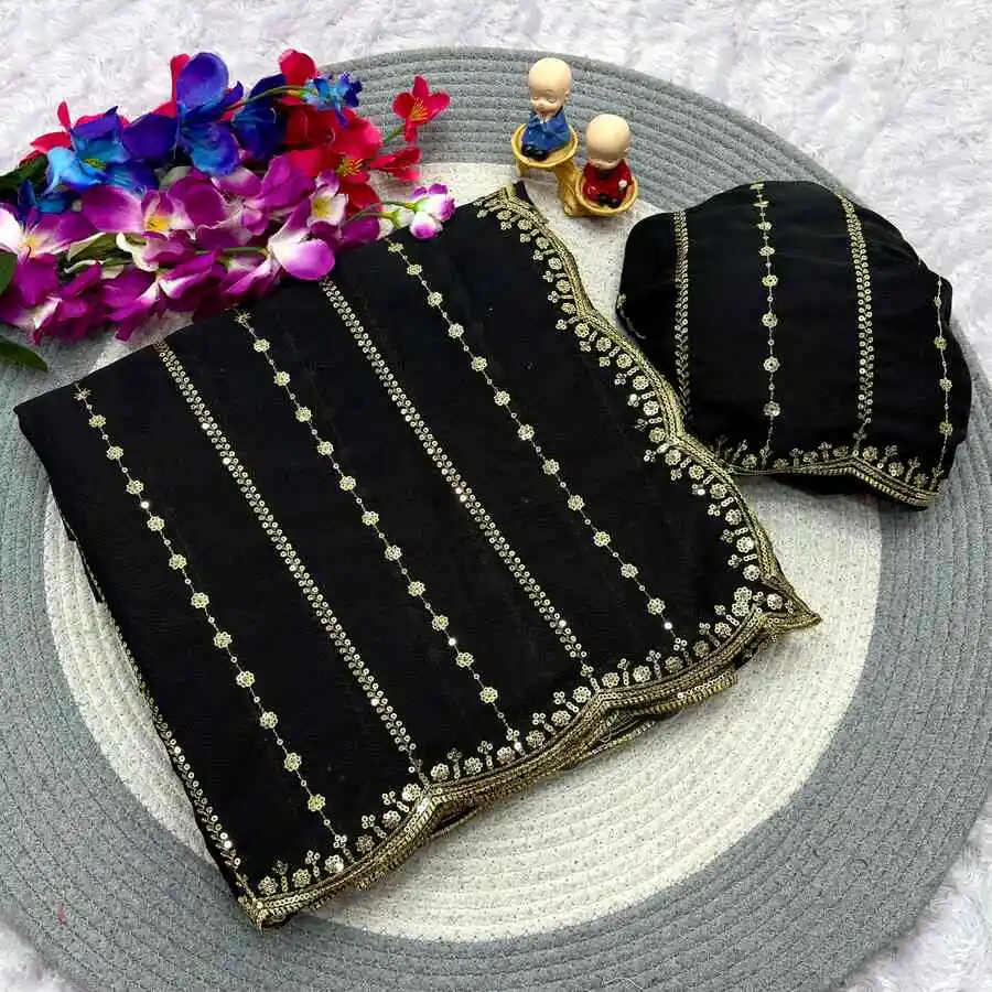 DESIGNER GEORGETTE SEQUENCE EMBROIDERY WORK SAREE WITH UNSTITCHED BLOUSE BLACK
