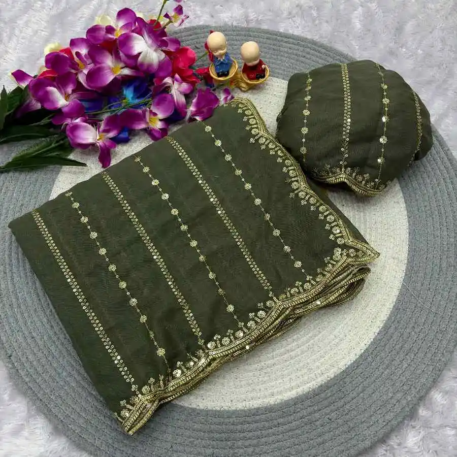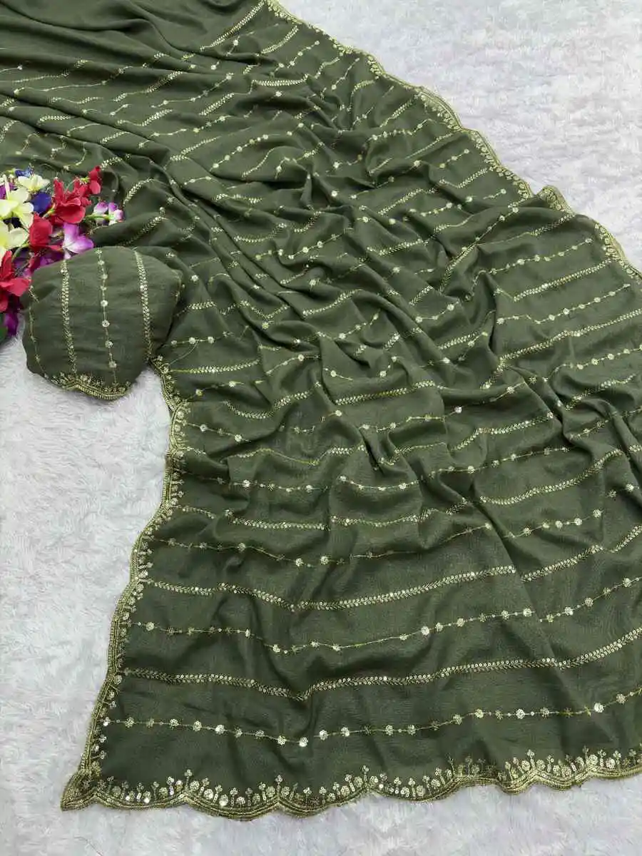DESIGNER GEORGETTE SEQUENCE EMBROIDERY WORK SAREE WITH UNSTITCHED BLOUSE GREEN