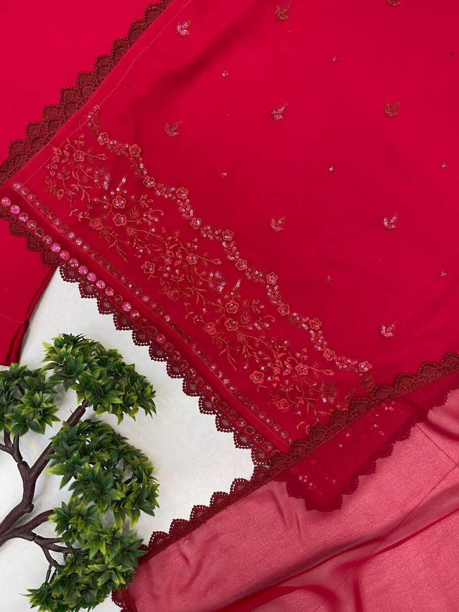 DESIGNER GEORGETTE SEQUENCE EMBROIDERY WORK TOP BOTTOM WITH DUPATTA RED