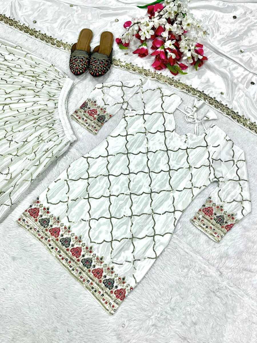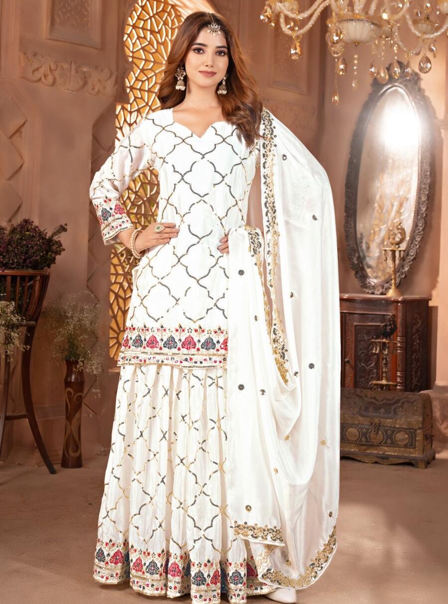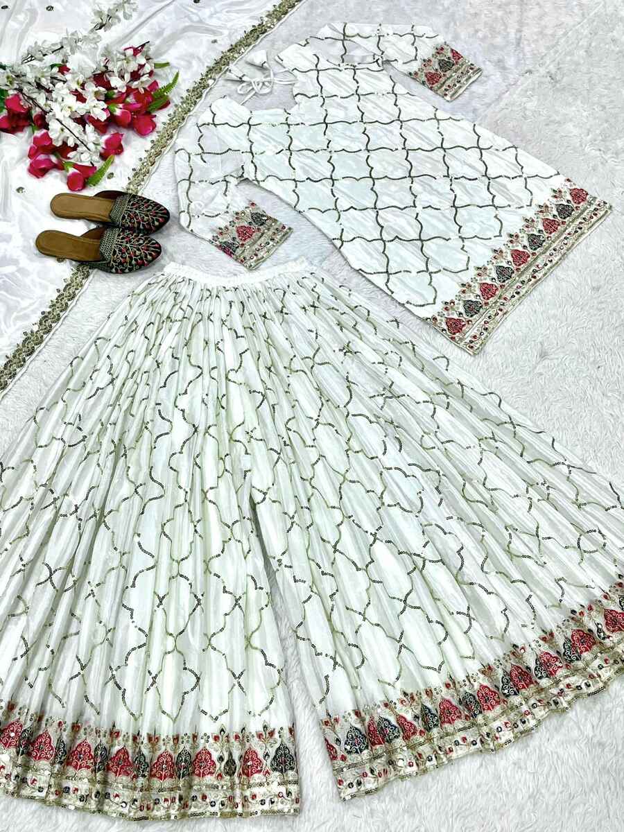 DESIGNER GEORGETTE SEQUENCE EMBROIDERY WORK TOP PALAZZO WITH DUPATTA WHITE