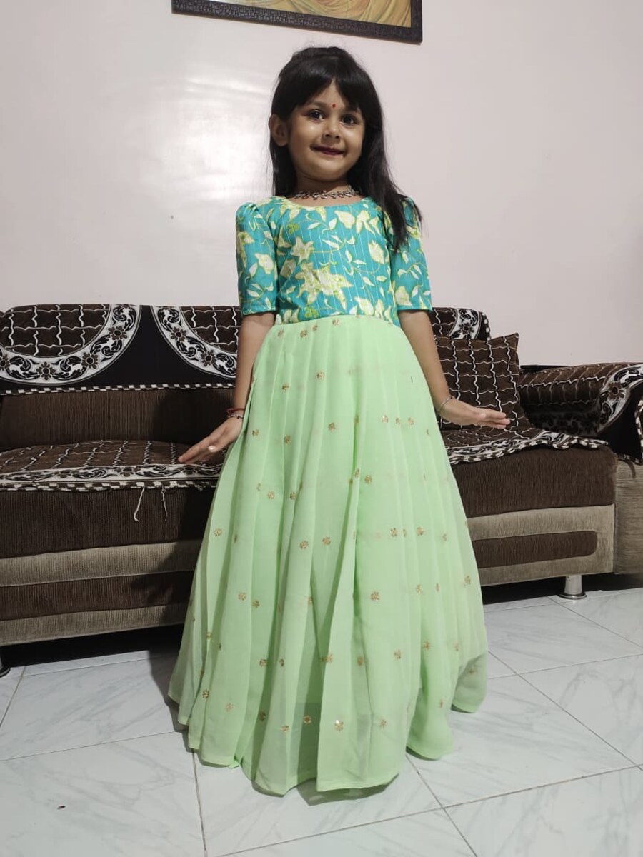 DESIGNER GEORGETTE SILK EMBROIDERY SEQUENCE WORK WITH TOP FULL PRINTED WORK KID’S GOWN PISTA
