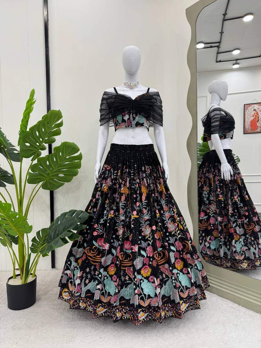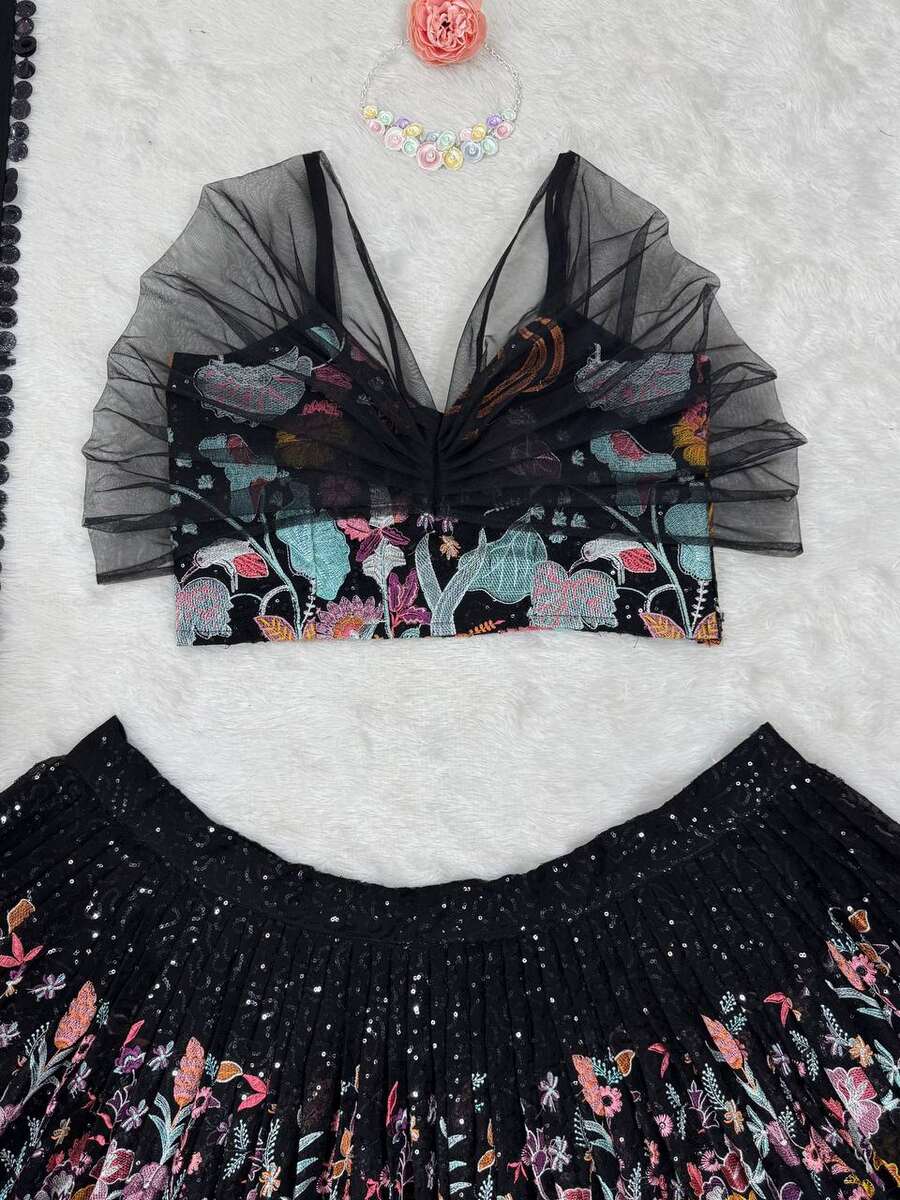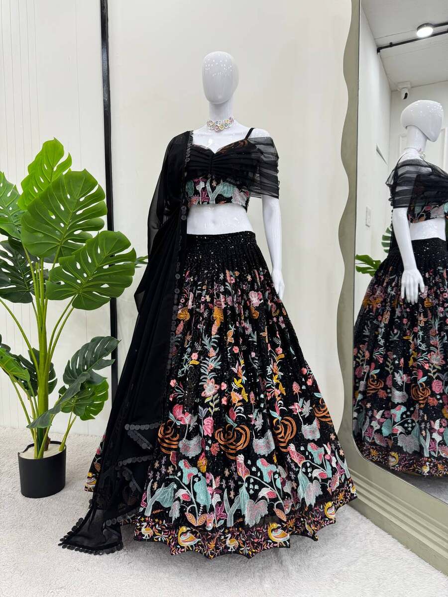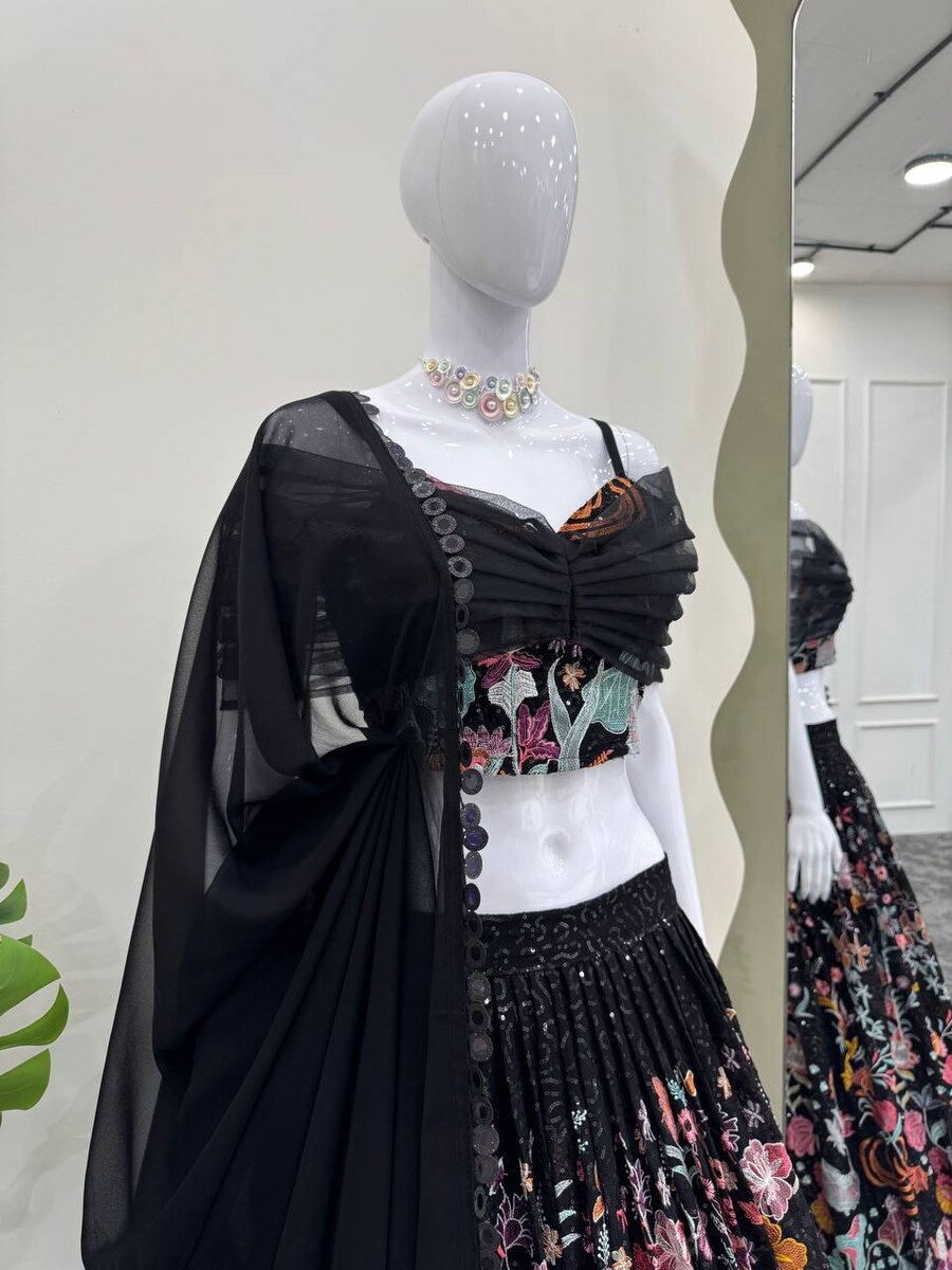 DESIGNER GEORGETTE THREAD AND SEQUENCE WORK LEHENGA CHOLI WITH DUPATTA BLACK