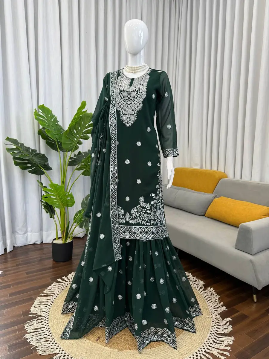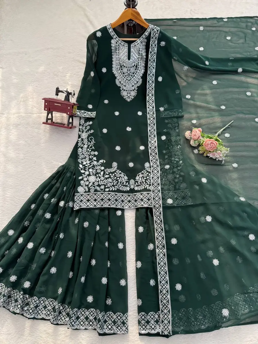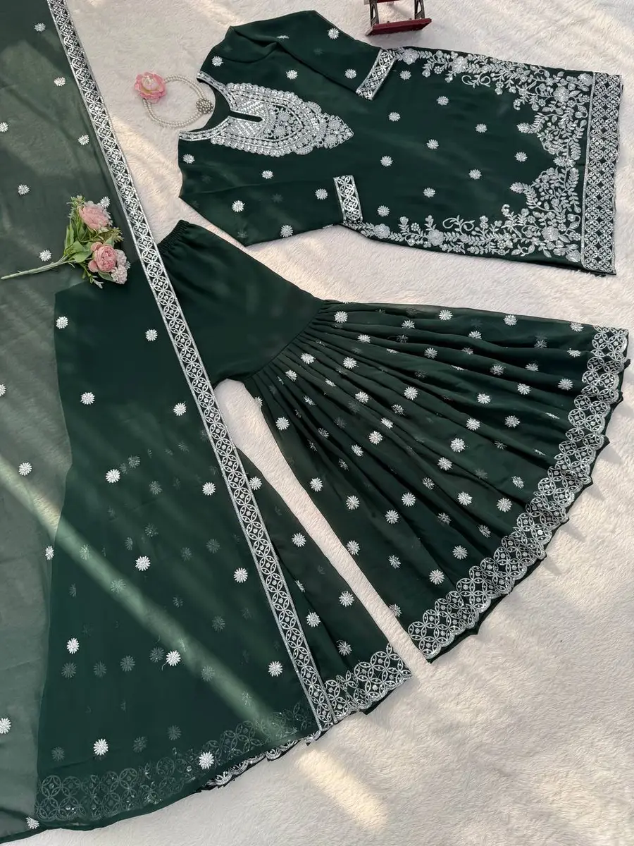 DESIGNER GEORGETTE THREAD & SEQUENCE WORK TOP SHARARA WITH DUPATTA GREEN