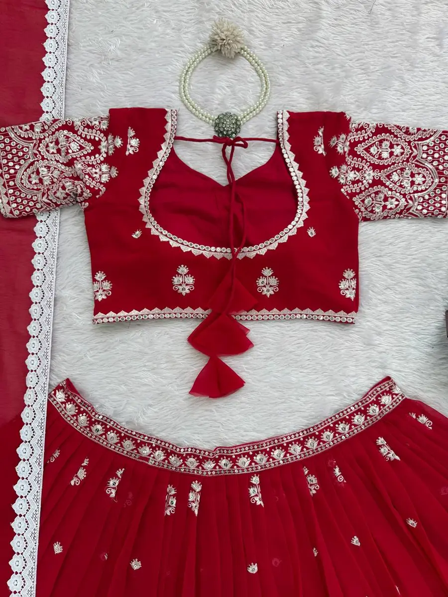 LEHENGA : GEORGETTE WITH EMBROIDERY THREAD WITH SEQUENCE DESIGN WORK, WITH KEN-KEN PACKING PATTA (FANCY DESIGNER LATKAN GIVE WITH LEHENGA FOR EXCLUSIVE LOOKS)