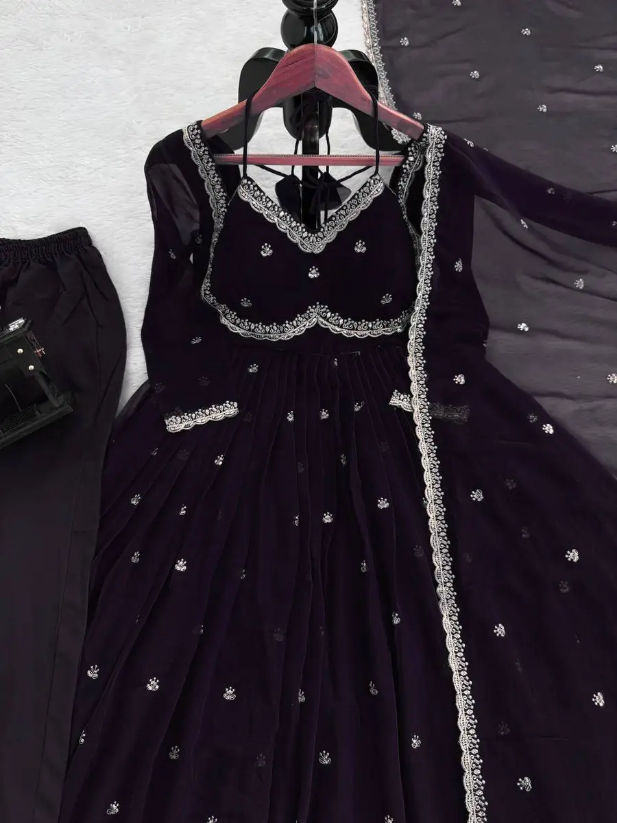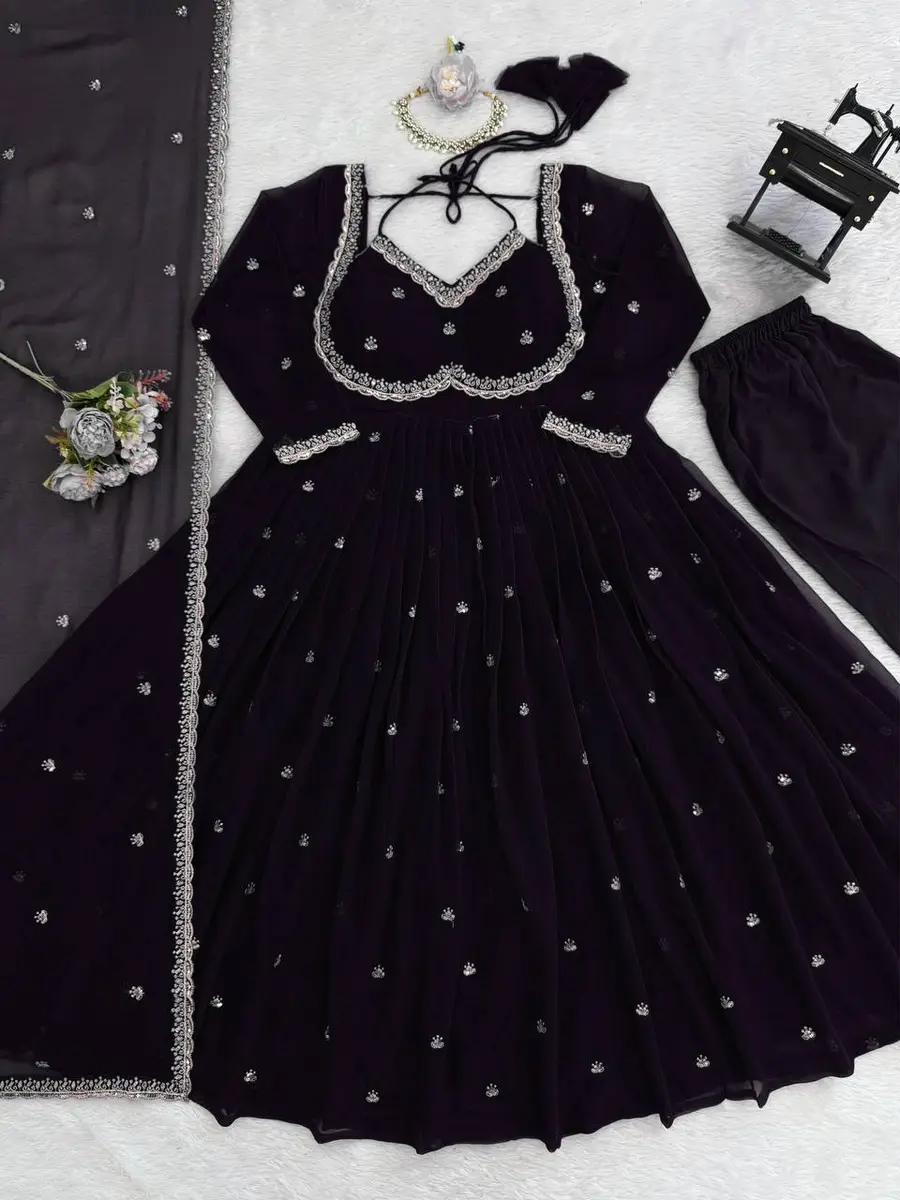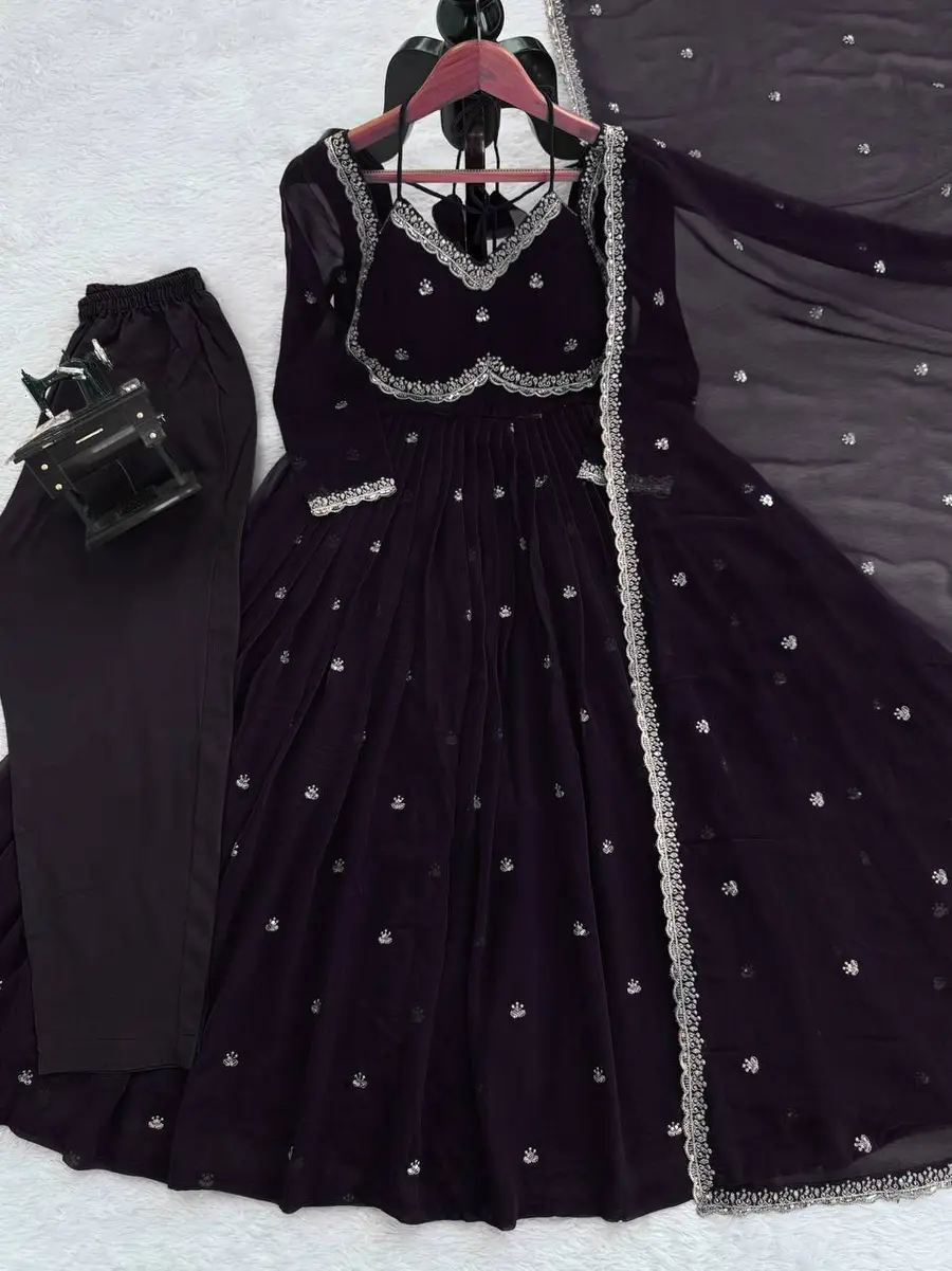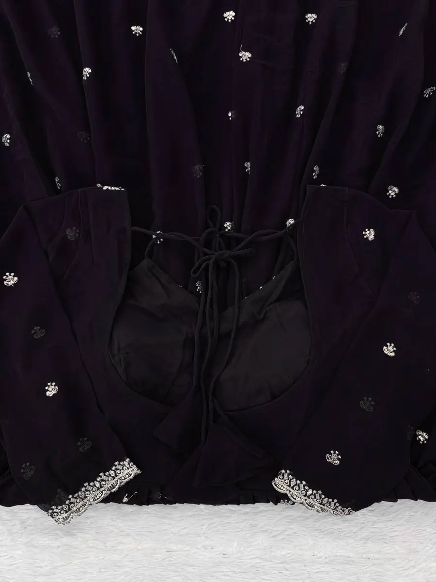DESIGNER GEORGETTE THREAD WITH SEQUENCE WORK GOWN BOTTOM WITH DUPATTA BLACK