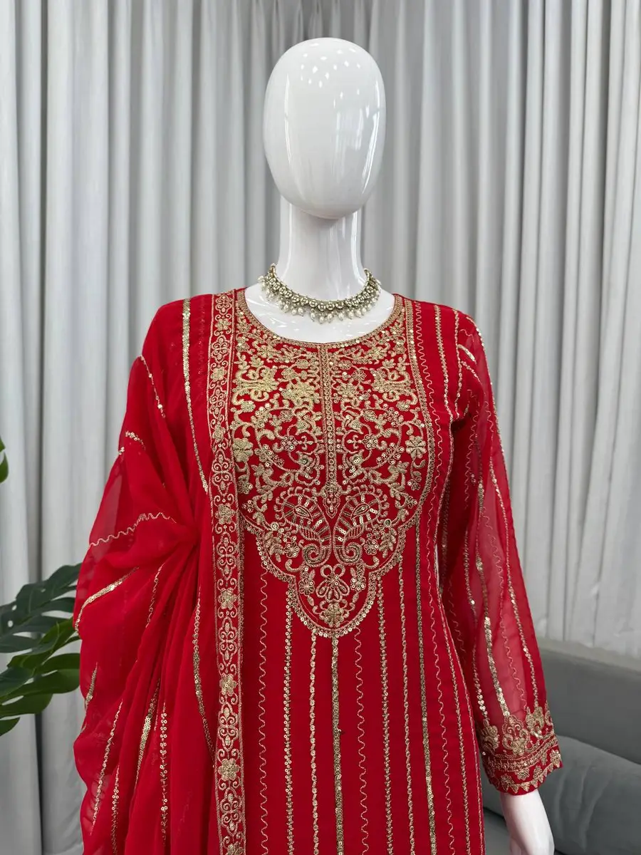 DESIGNER GEORGETTE THREAD WITH SEQUENCE WORK TOP BOTTOM WITH DUPATTA RED