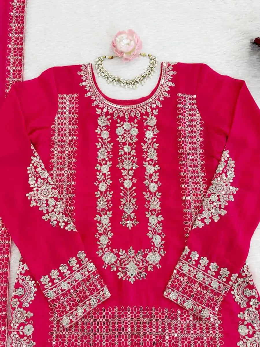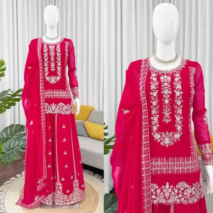 DESIGNER GEORGETTE THREAD WITH SEQUENCE WORK TOP PALAZZO WITH DUPATTA RANI