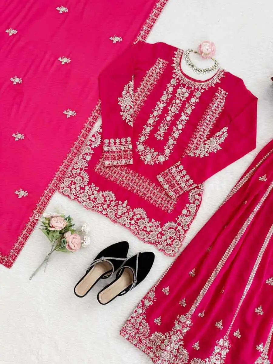 PALAZZO WORK :- HEAVY CHINE SEQUENCE WORK