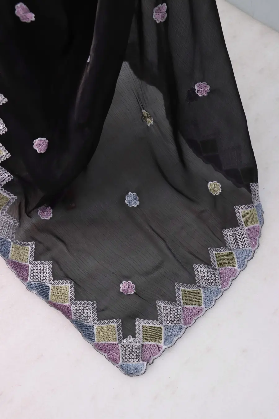 DESIGNER GMY CHIFFON SILK SEQUENCE WORK WITH 4 COL THREAD WORK SAREE WITH UNSTITCHED BLOUSE BLACK