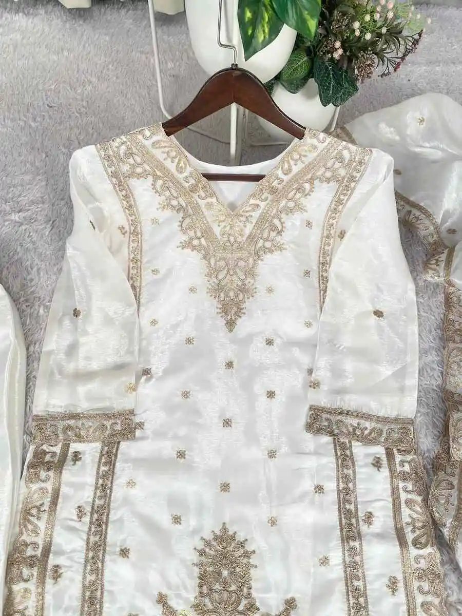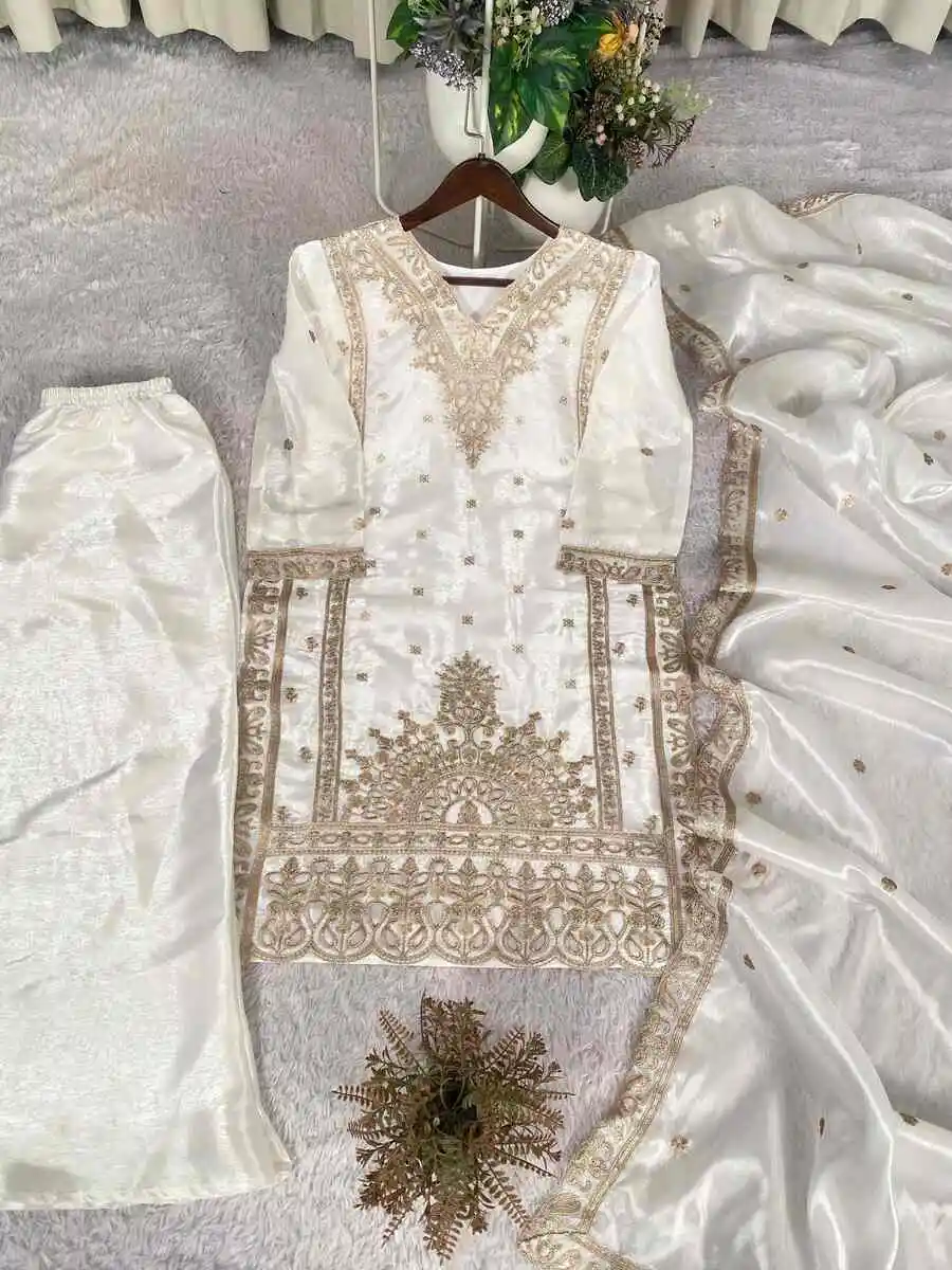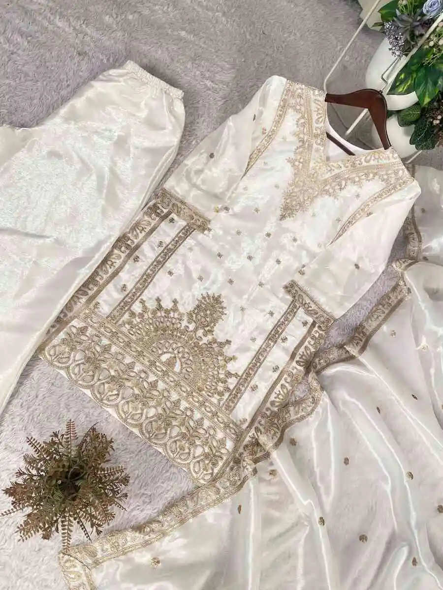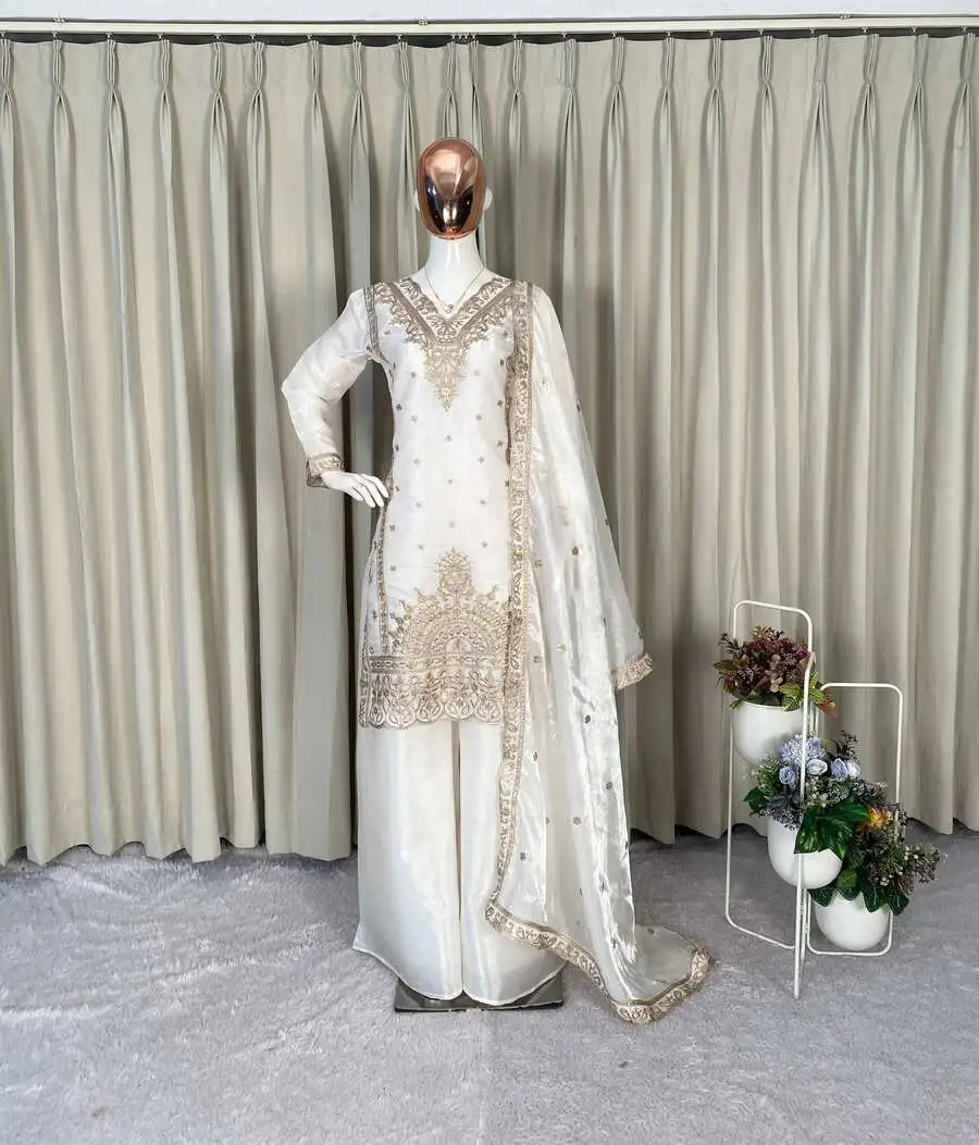 DESIGNER GMY SILK CODING WITH SEQUENCE EMBROIDERY WORK TOP PALAZZO WITH DUPATTA WHITE