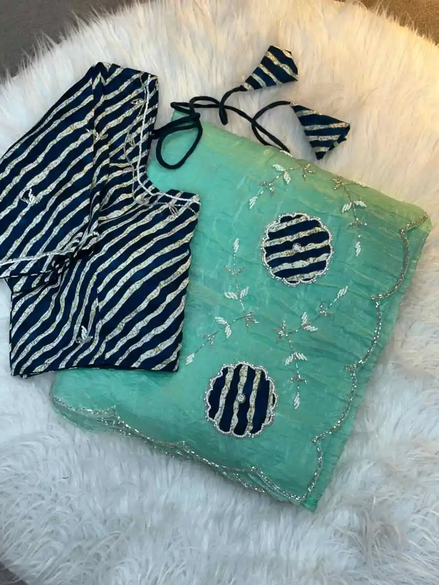 WORK : BANDHEJ HANDWORK CUTDANA BUTTA AND RICH PALLU AND FOIL PRINT WORK
