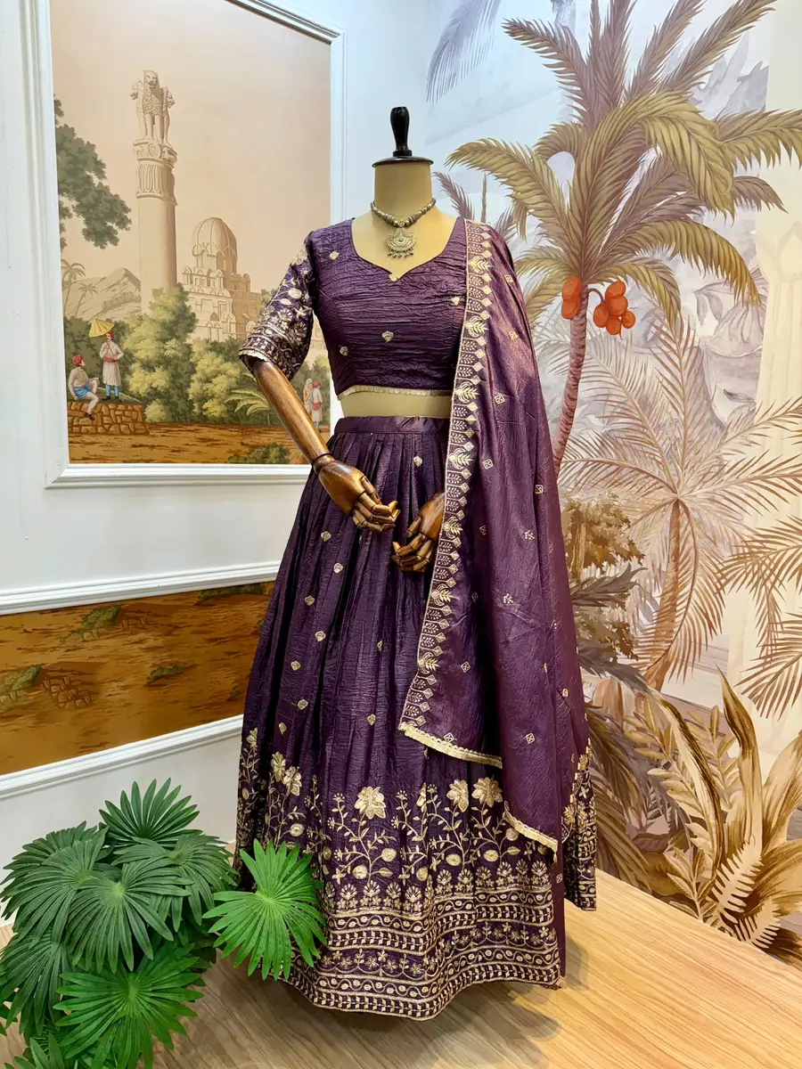 DESIGNER GOLD CRUSH EMBROIDERY WORK LEHENGA CHOLI WITH DUPATTA PURPLE