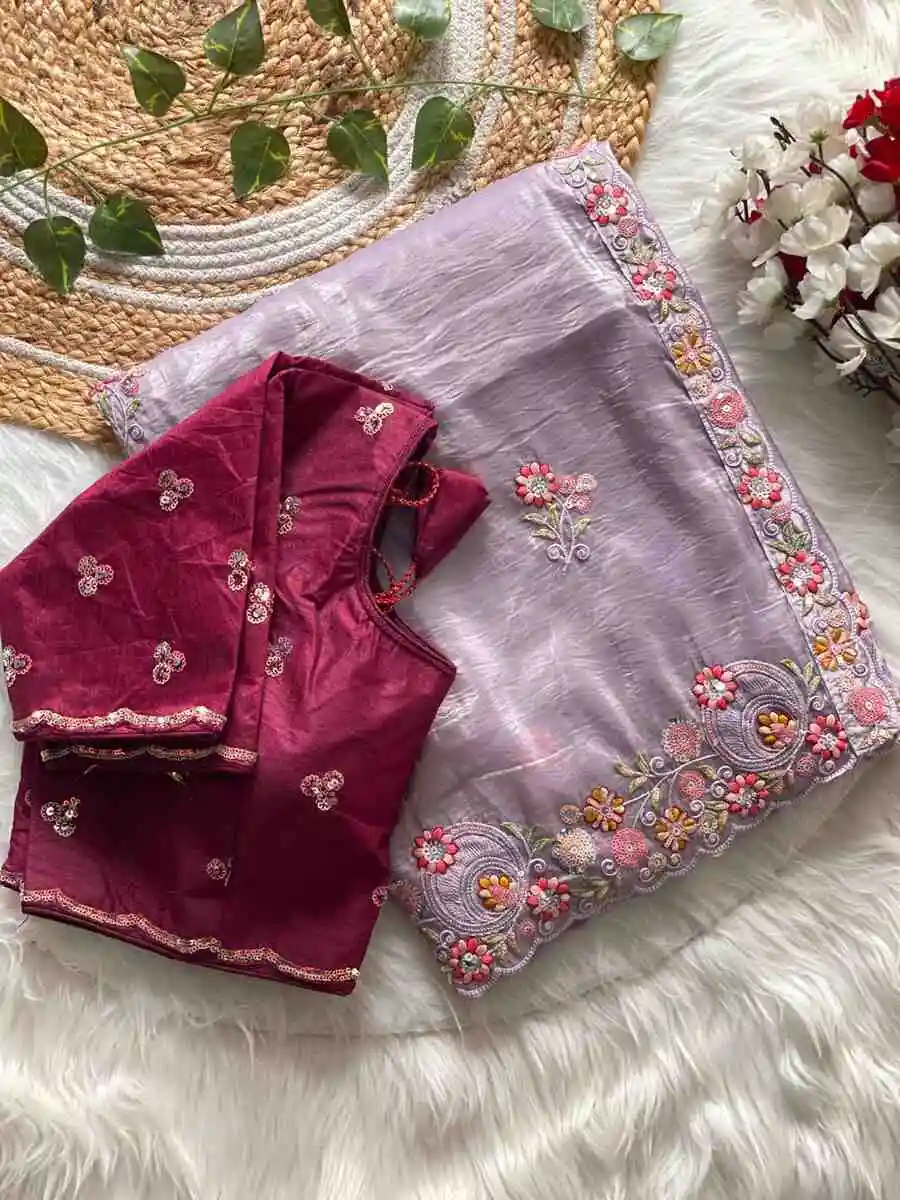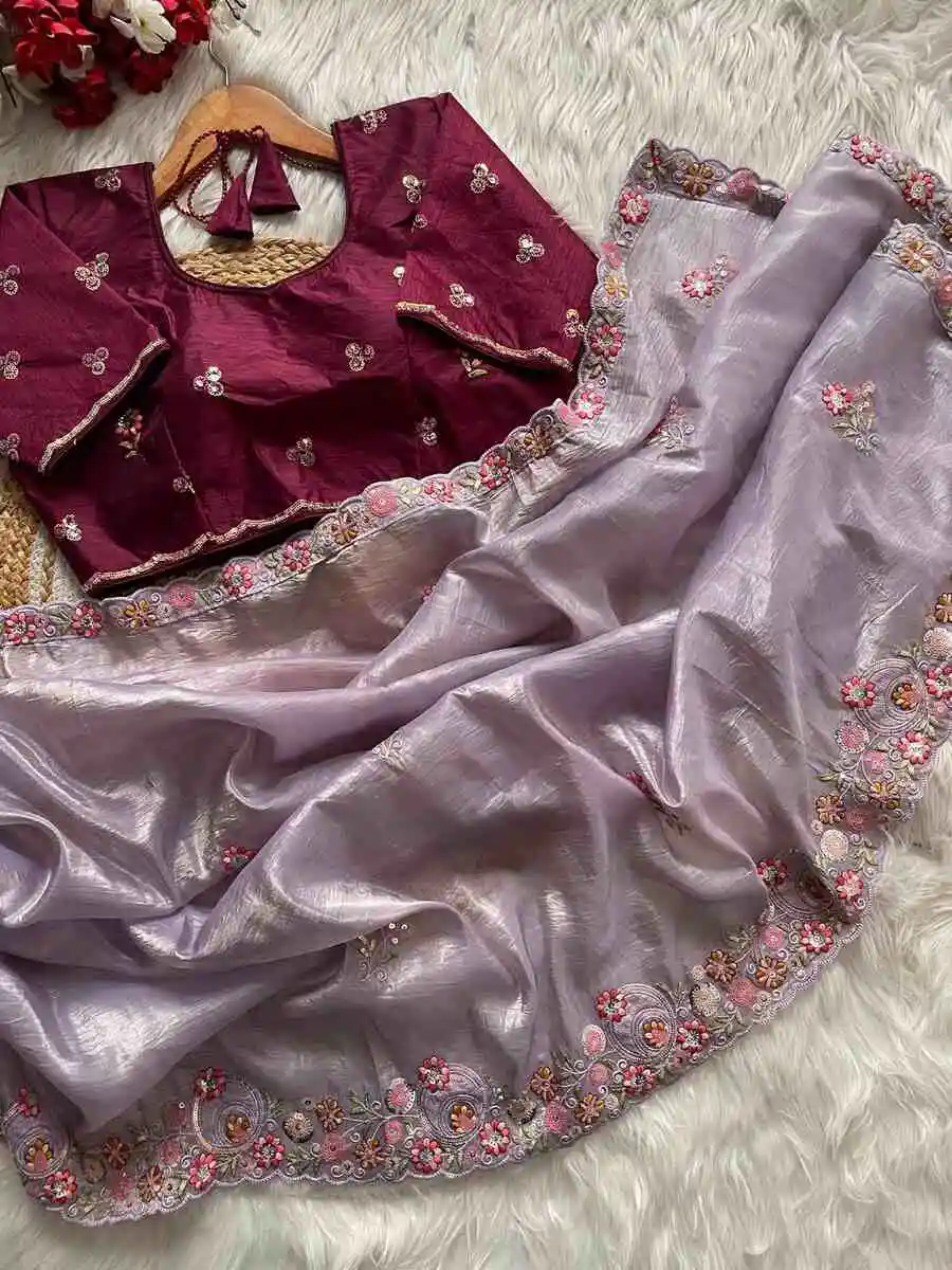 DESIGNER GOLD CRUSH MULTI THREAD SEQUENCE CONTRAST PALLU WORK WITH ARC CUT BORDER WORK SAREE WITH UNSTITCHED BLOUSE LAVENDER