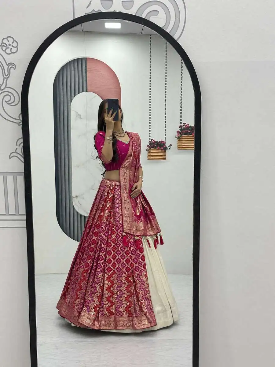 DESIGNER JACQUARD SILK FANCY MOTI WORK LEHENGA CHOLI WITH DUPATTA PINK