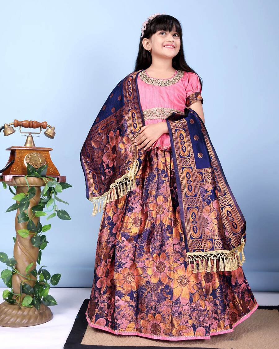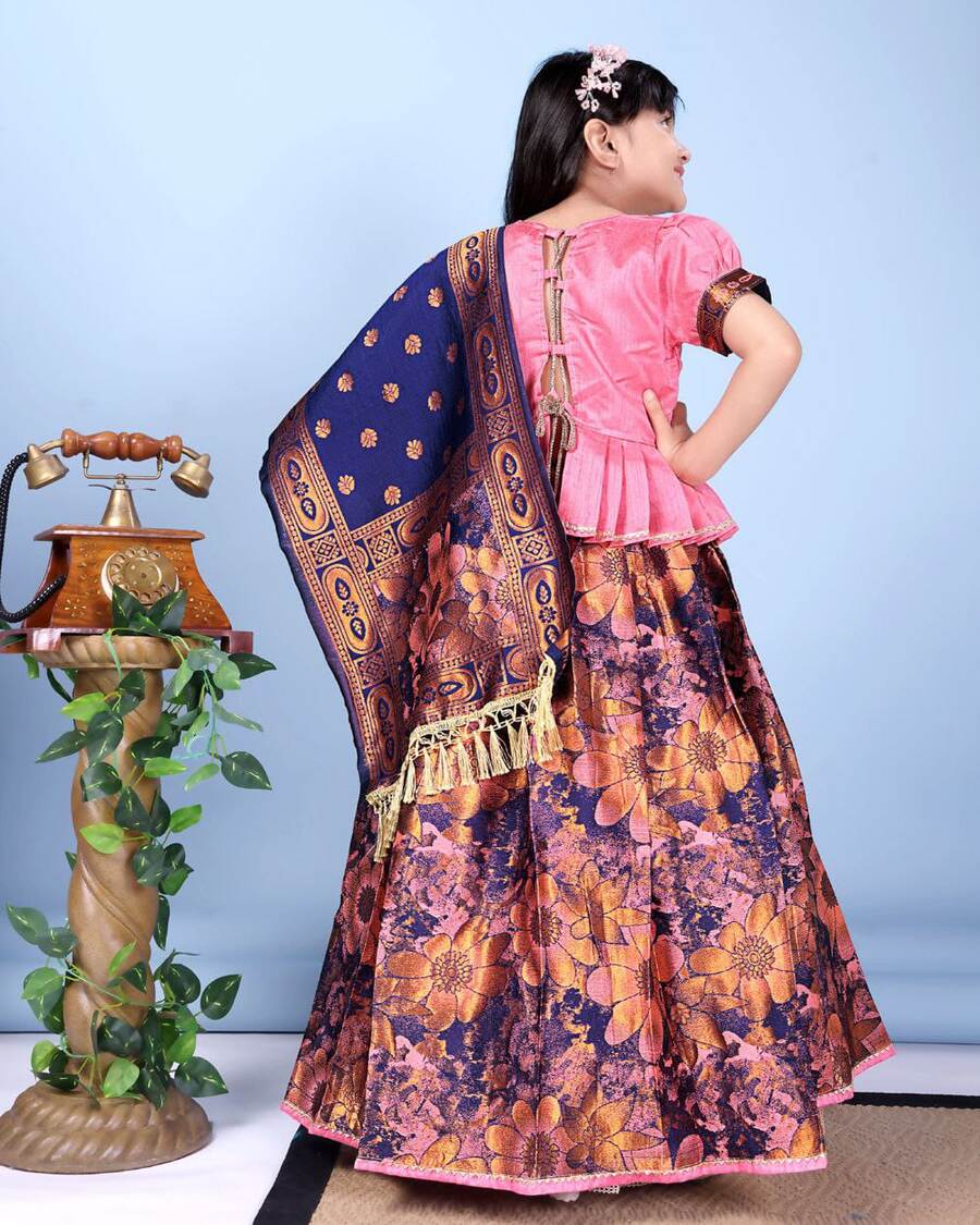 DESIGNER JACQUARD WEAVING WORK KID’S LEHENGA CHOLI WITH DUPATTA BABY PINK