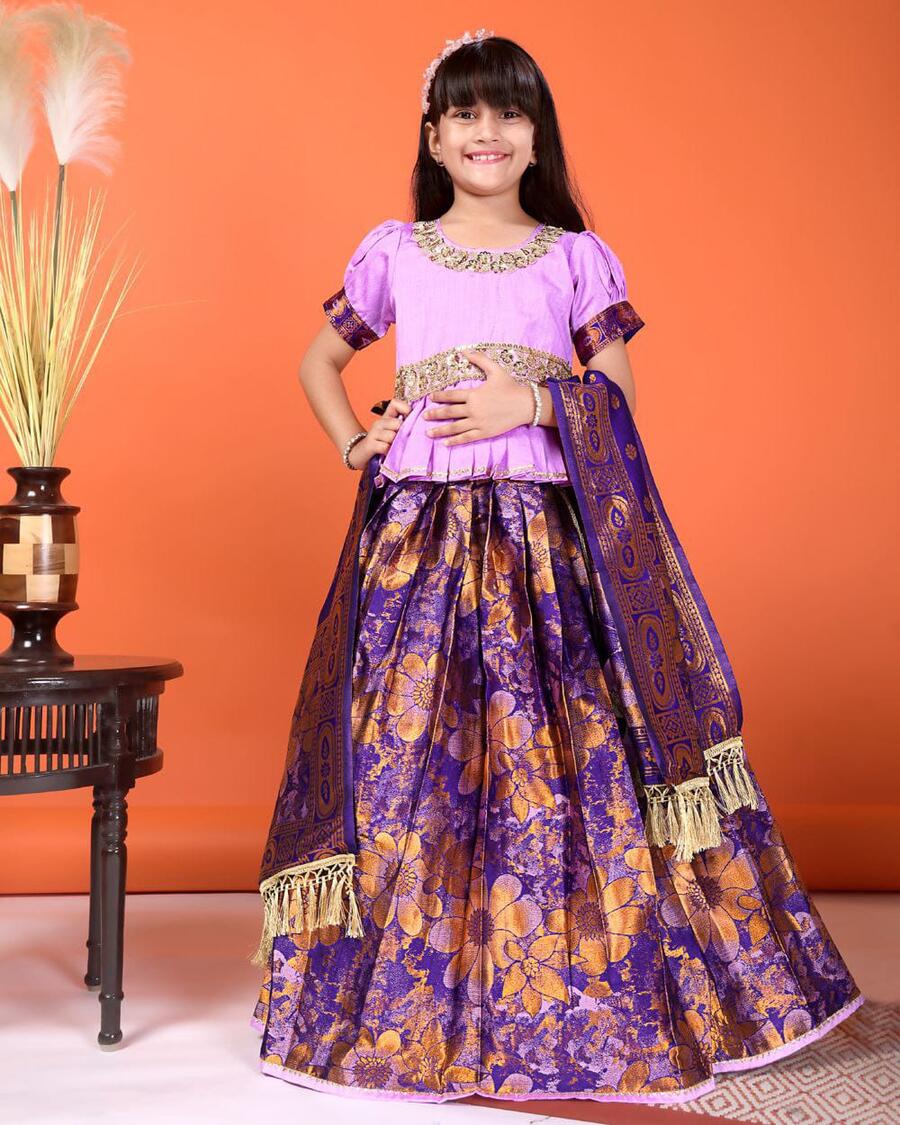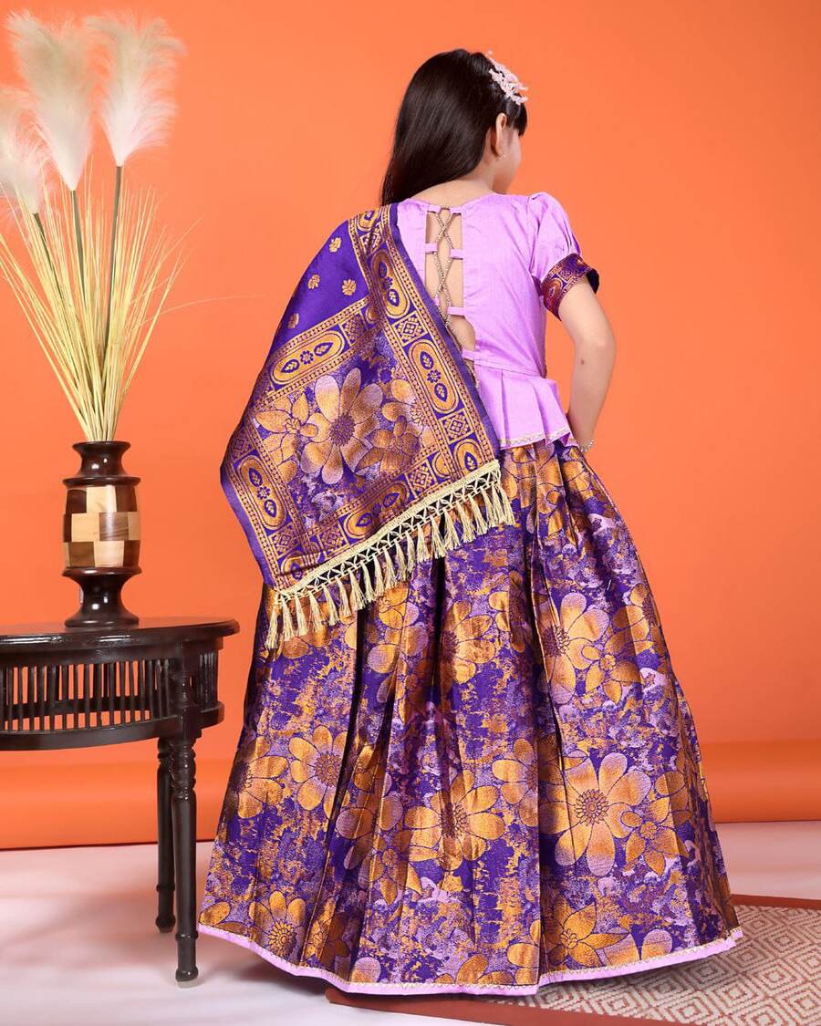 DESIGNER JACQUARD WEAVING WORK KID’S LEHENGA CHOLI WITH DUPATTA LAVENDER